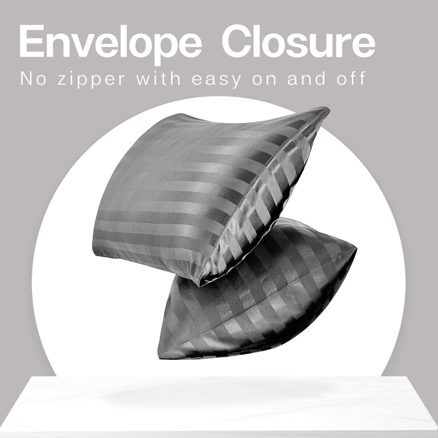 MR&HM Satin Pillowcase for Hair and Skin, Silk Satin Pillowcase 2 Pack, Standard Size Pillow Cases Set of 2, Silky Pillow Cover with Envelope Closure (20x26, Dark Grey Striped)