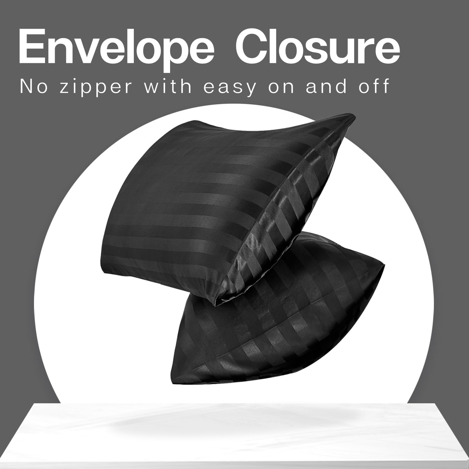 MR&HM Satin Pillowcase for Hair and Skin, Silk Satin Pillowcase 2 Pack, Standard Size Pillow Cases Set of 2, Silky Pillow Cover with Envelope Closure (20x26, Black Striped)