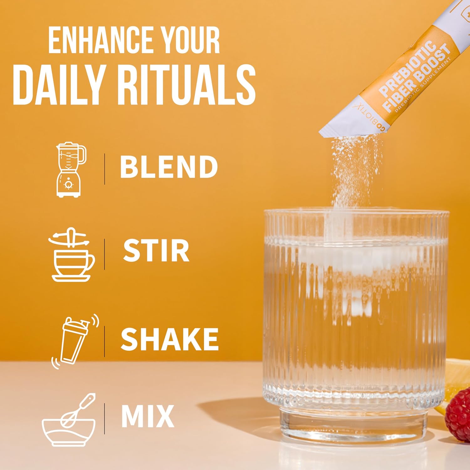 GoBiotix Fiber Supplement Powder with Prebiotics for Digestive Health and GLP-1 Support, Soluble Fiber for Gut Health & Debloat, Keto, Vegan, Gluten & Sugar Free, 20 Servings (Travel)