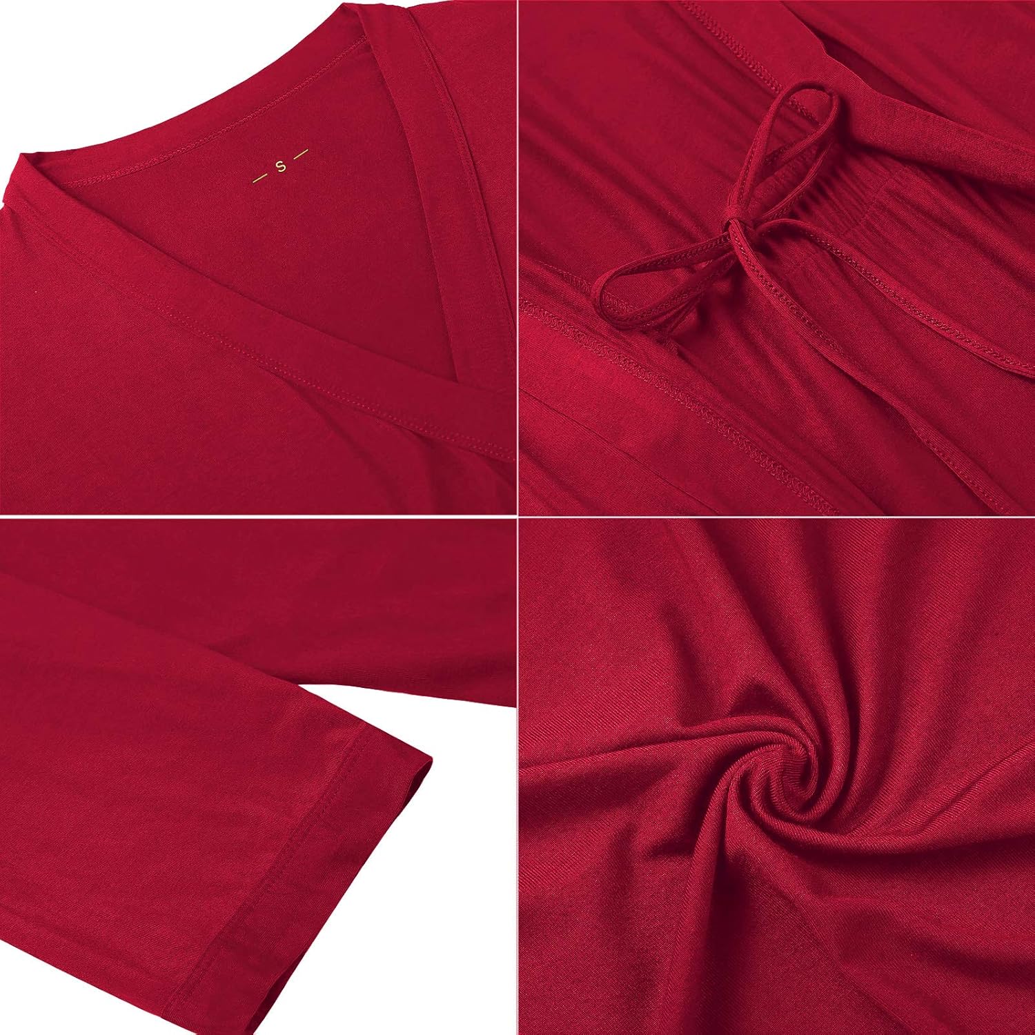 - Unique Design —— This comfortable and sexy bath robe features 3/4 sleeves wrap design robe, waist front tie, side pockets to keep your hands warm or to keep things close by your side while you are lounging or nursing your baby.