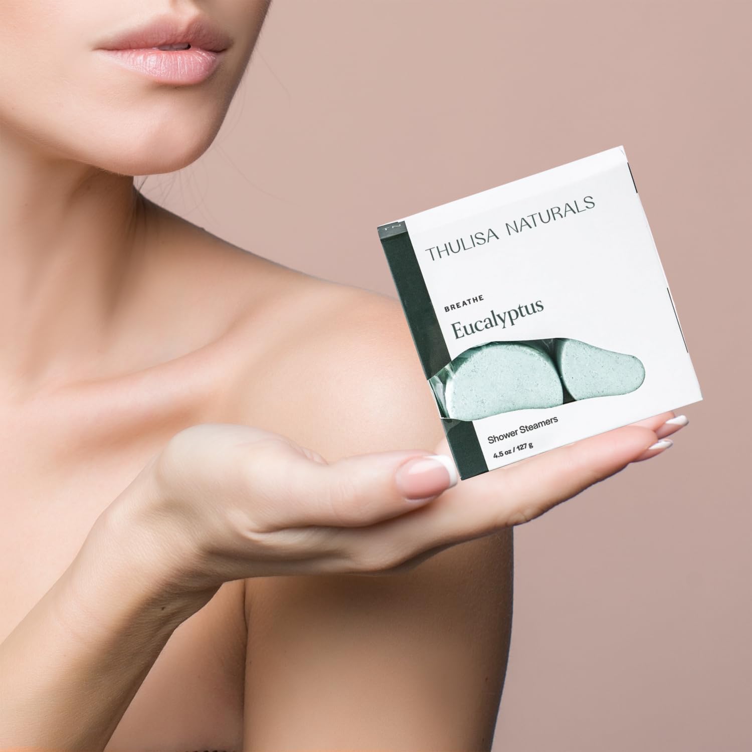 Thulisa Naturals Eucalyptus Shower Steamers Aromatherapy | Organic Shower Bombs with Essential Oils | Self Care Christmas Birthday & Spa Gifts for Women & Men | Stocking Stuffers | 4 Pack