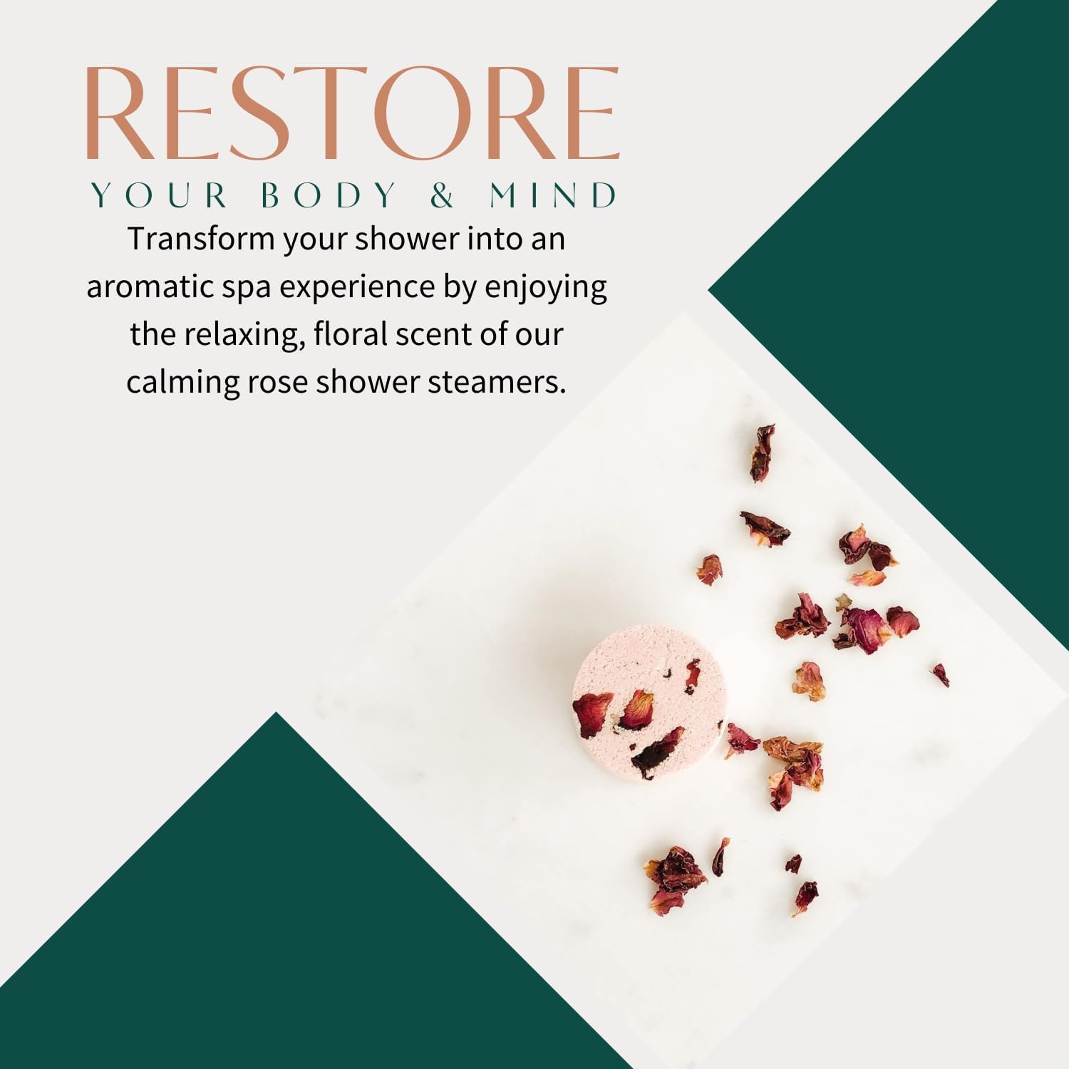 - RESTORE YOUR BODY & MIND: Invite balance into your bathroom with these grounding aromatherapy shower steamers. Transform your shower into an aromatic spa experience by enjoying the relaxing, floral scent of our calming and grounding signature Rose shower steamers. Our rose oil blend has a warm, deeply floral, rich, and slightly spicy scent which makes for the perfect indulgence after a long day.
