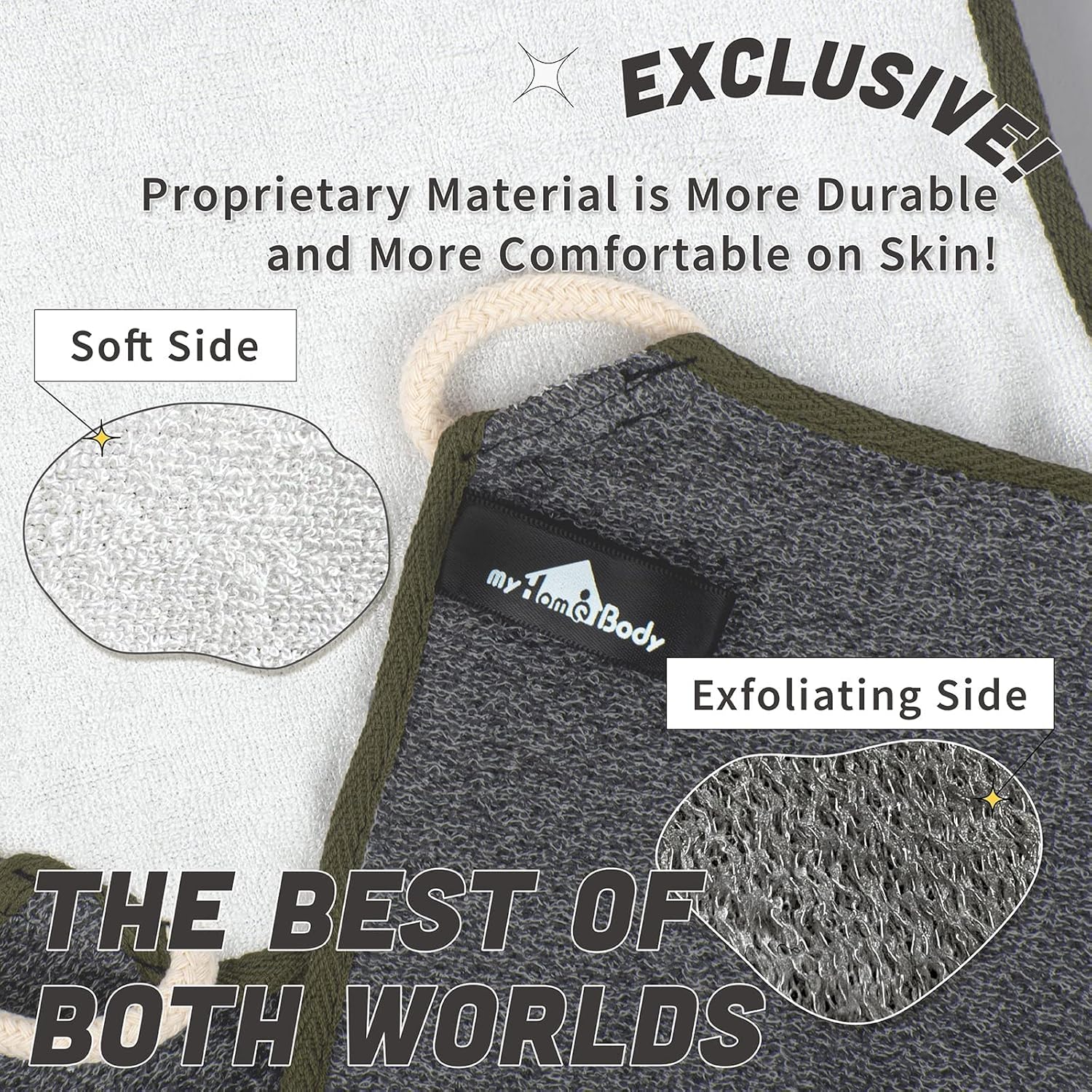myHomeBody Dual-Textured Exfoliating Washcloth with Soft and Scrubbing Side, Body Exfoliation Scrubber for Bath, Shower, Durable 3 Layer Construction, Gray, Set of 3
