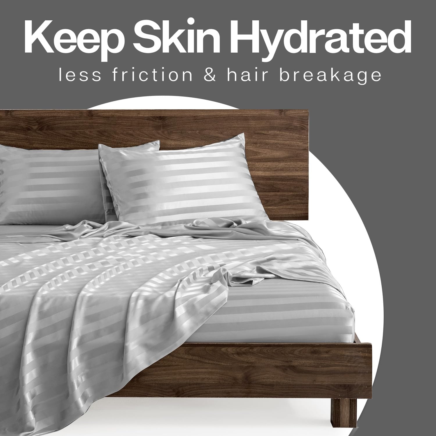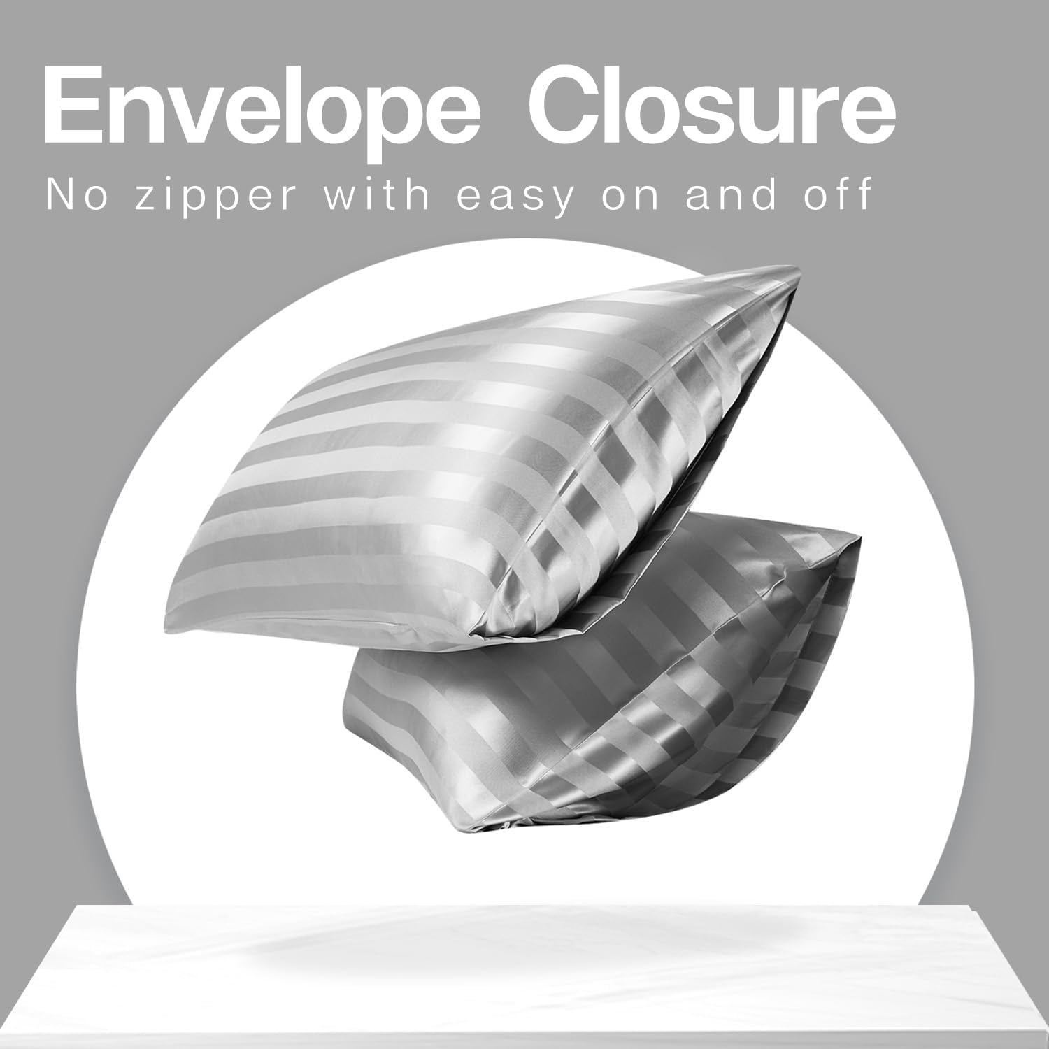 MR&HM Satin Pillowcase for Hair and Skin, Silk Satin Pillowcase 2 Pack, Standard Size Pillow Cases Set of 2, Silky Pillow Cover with Envelope Closure (20x26, Silver Grey Striped)