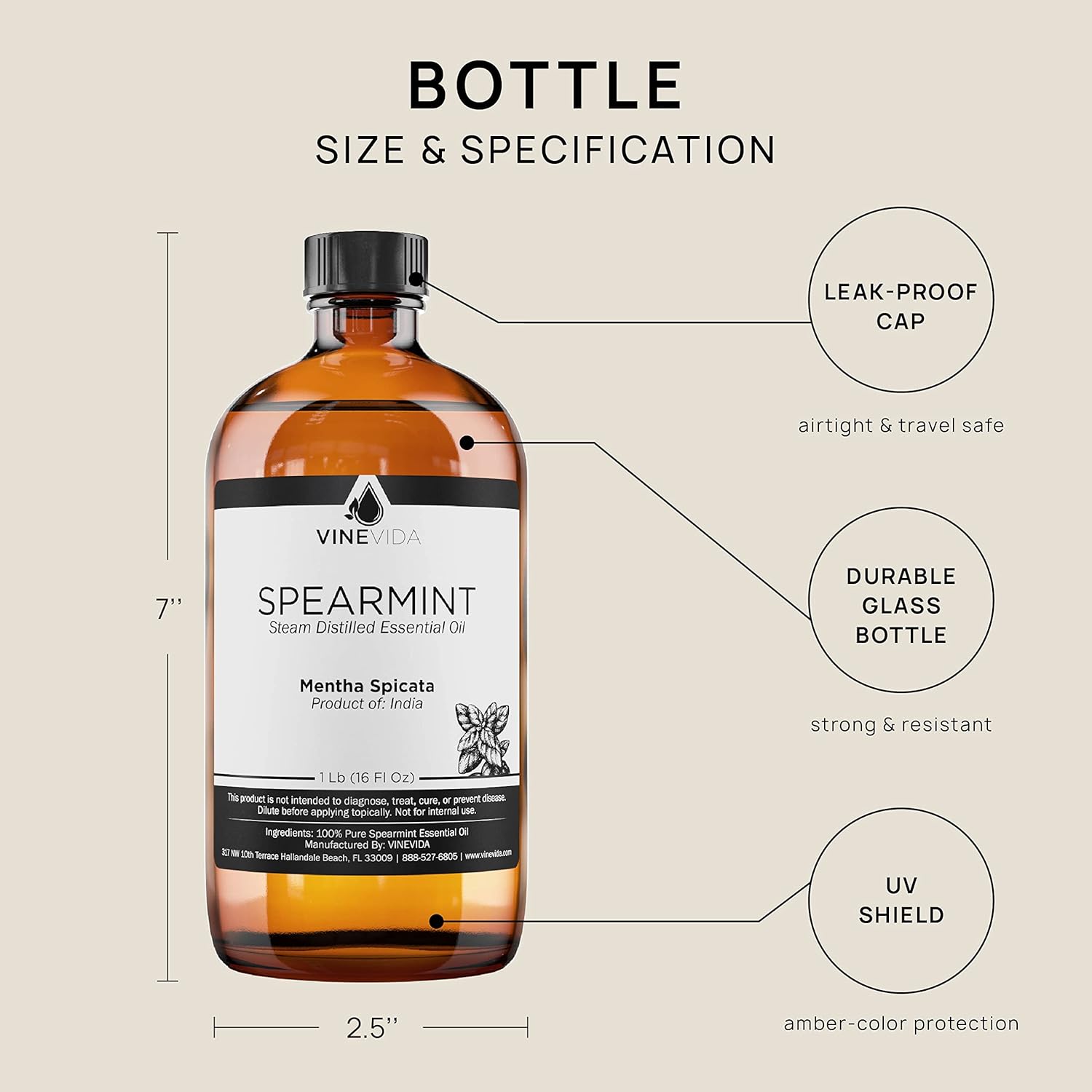 VINEVIDA Spearmint Essential Oil - 16 oz - Undiluted - DIY Candle Scents - Bulk for Soap Making & Skin Safe