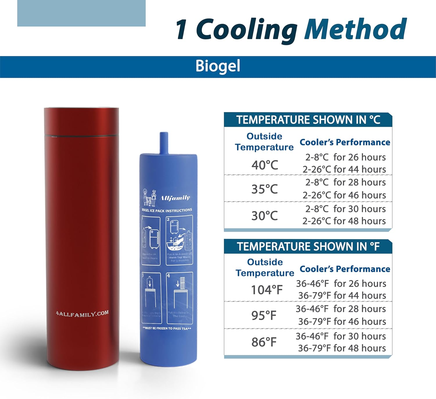 - ADVANCED BIOGEL TECHNOLOGY: Eliminate melted water packs & frozen meds, our Biogel freezes at 36°F to keep a stable range, protecting medicine from damage; this medicine cooler for travel TSA approved design is reusable and practical