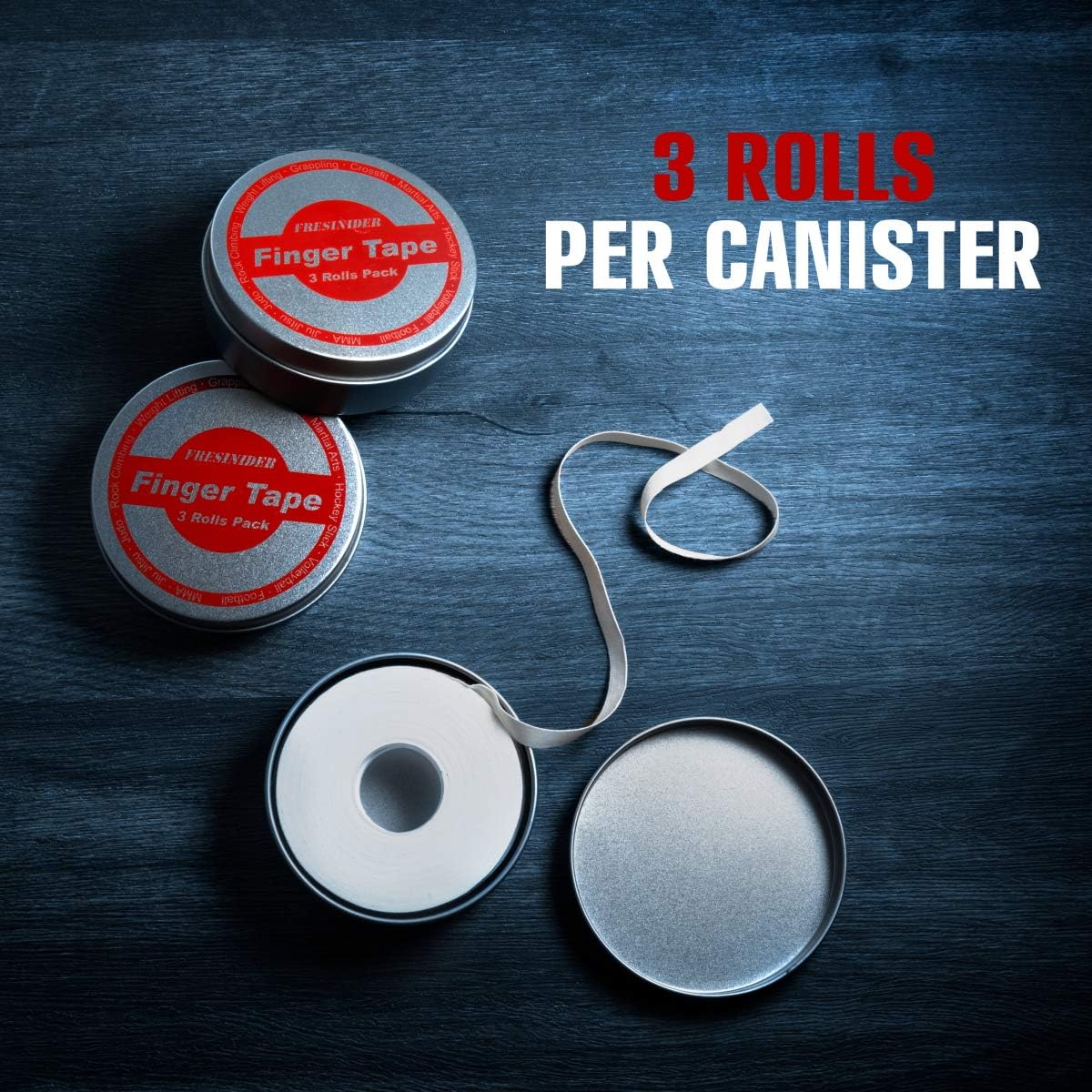 - Superior Quality and Value: Fresinider athletic tape offers exceptional quality and value, with 9 rolls of 0.3" x 45 feet professional-grade tape—providing twice as much as competitors. Packaged in three durable canisters, the tape stays dry, organized, and easy to tear, making it ideal for use in the gym, dojo, or outdoor activities.