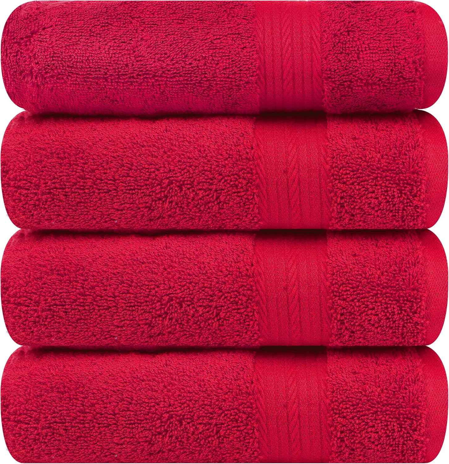 Ample Decor Hand Towel 18 X 28 Inch Pack of 4 600 GSM 100% Cotton, Soft Absorbent Thick Durable Premium Quality, for Hotel, Bathroom, Spa, Daily Use, Gym - Red