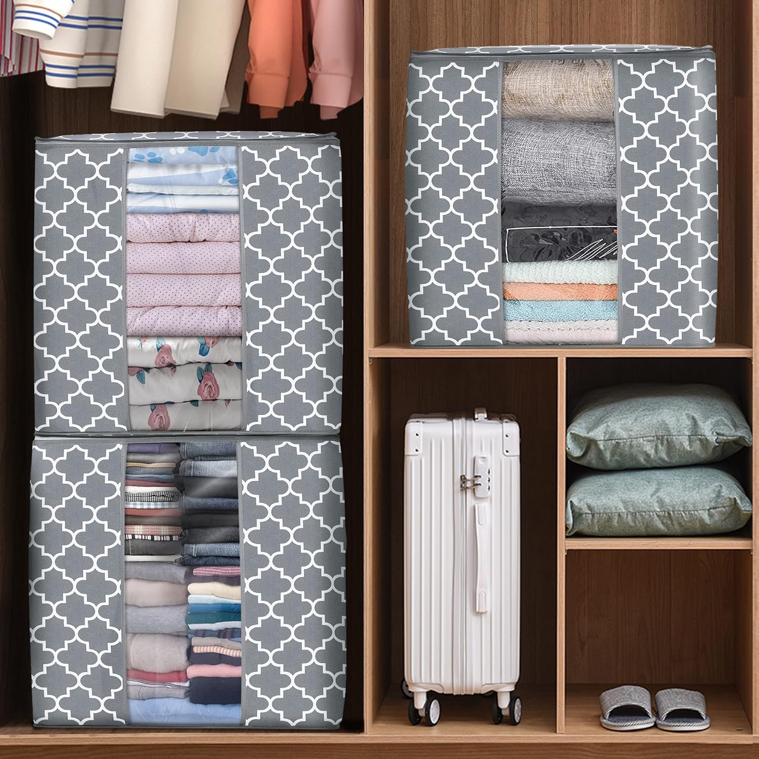 WISELIFE Storage Bags [3 Pack/100L] Large Blanket Clothes Organization and Storage Containers for Comforters,Bedding, Foldable Organizer with Reinforced Handle, Clear Window, Sturdy Zippers,Light Gray
