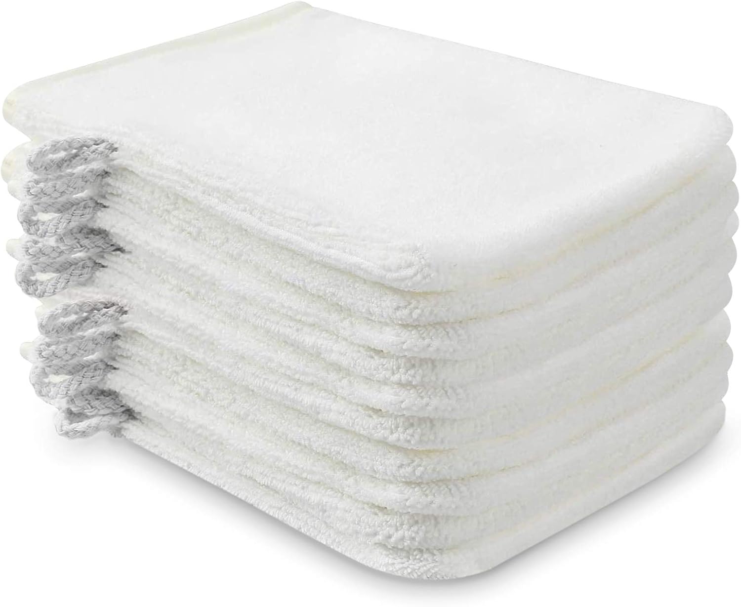PHOGARY 10 Pack Microfiber Body Wash Mitts, Soft Face Mitten, Bath Spa Cloth, Reusable Makeup Remover Mitt Gloves, European Style Wash Cloth, 6×8 inch (White)