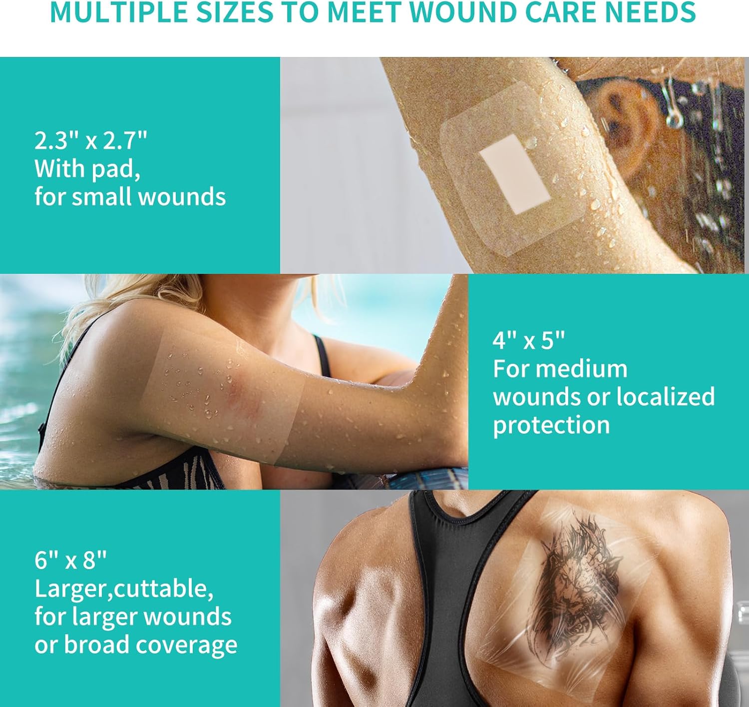 - Waterproof: Excellent waterproof performance is impermeable to liquids brings safe care to wounds, you can showering or swimming as usual