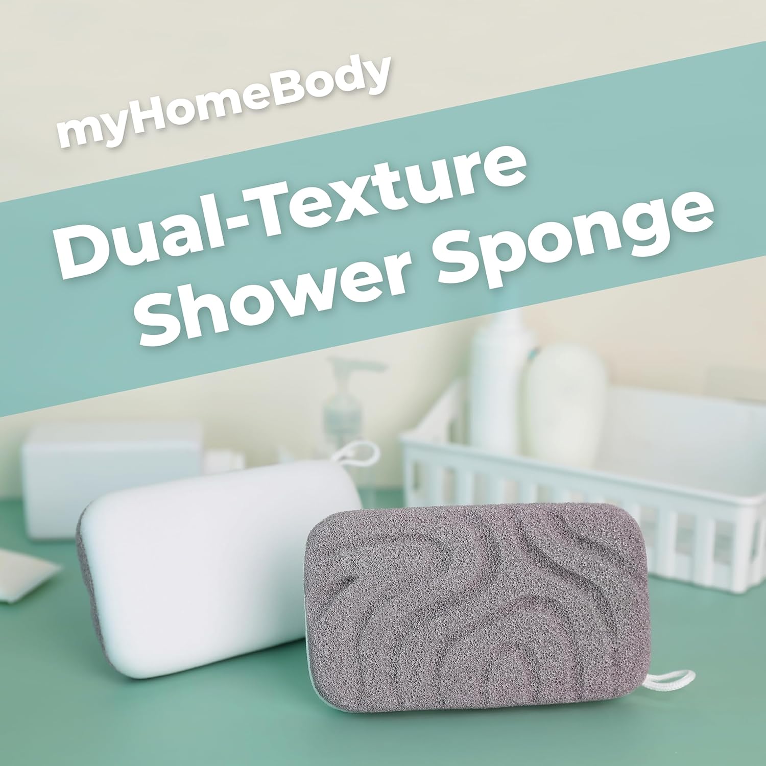 myHomeBody Dual-Texture Shower Sponge, Beauty Body Scrubber Exfoliator for Women, Exfoliating Loofah for Men, 2pc