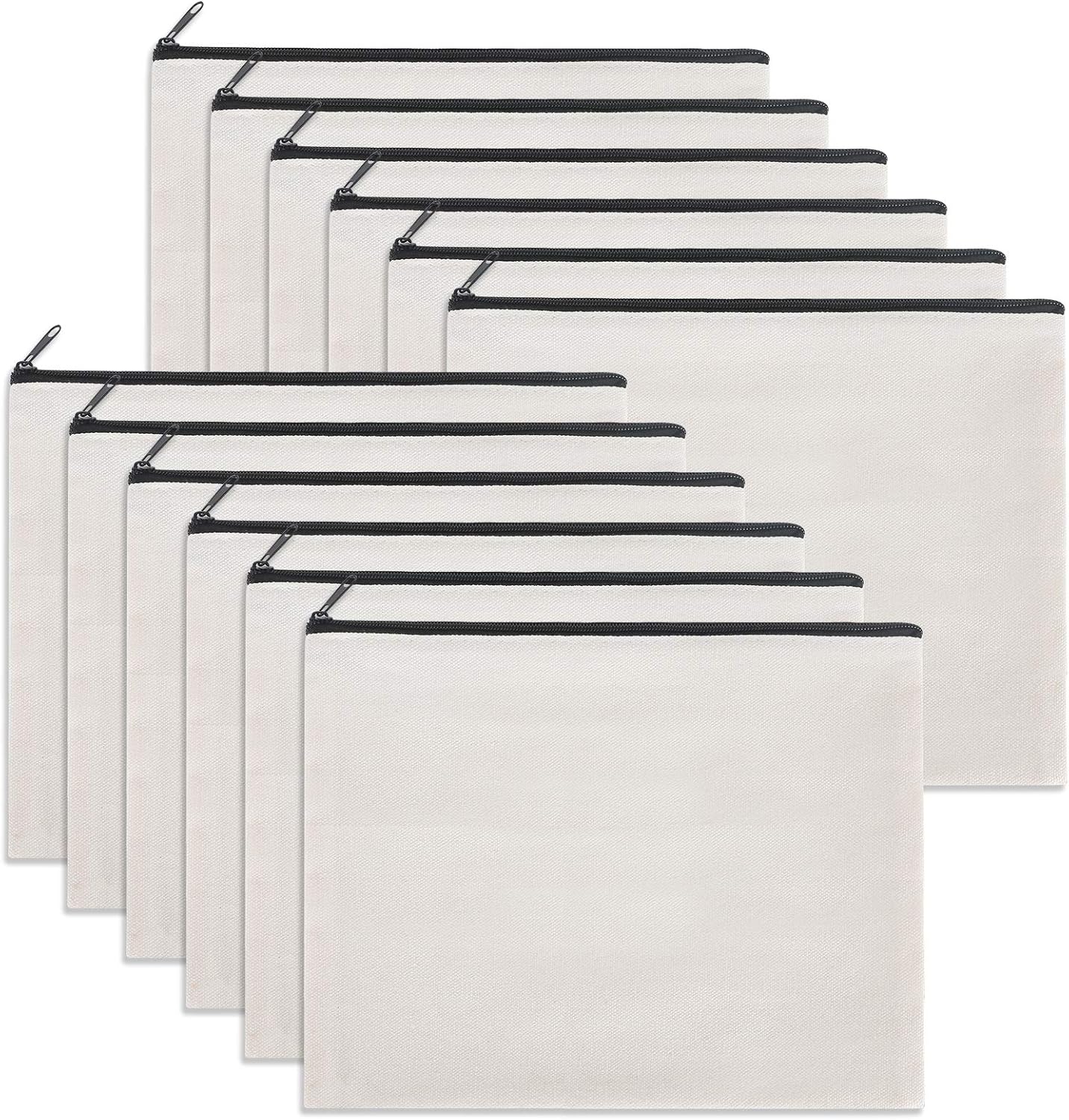 12 Pieces White Cotton Canvas Makeup Bag, Multipurpose Cosmetic Bag with Zipper Travel Toiletry Pouch, Blank DIY Craft Bag (White, L)
