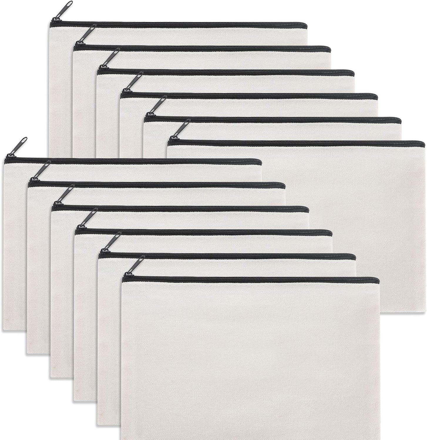 12 Pieces White Cotton Canvas Makeup Bag, Multipurpose Cosmetic Bag with Zipper Travel Toiletry Pouch, Blank DIY Craft Bag (White, M)