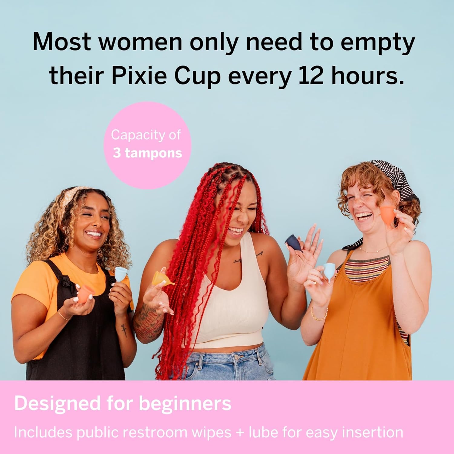 - ECO-FRIENDLY. Replacing 5 tampons, you can wear your Pixie Cup for 12 hours before emptying. Plus, it lasts for up to 10 years, meaning more money in your pocket and less plastic in landfills!