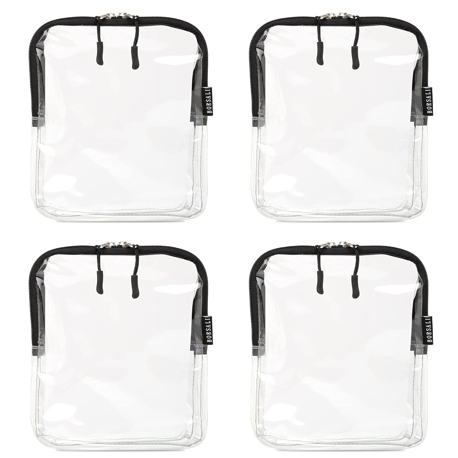 BORSALI Quart Size Bag TSA-Approved for Carry On Travel - One (1) Quart Clear Toiletires, Cosmetic and 3-1-1 Liquids Toiletry Bag - 4 Pack