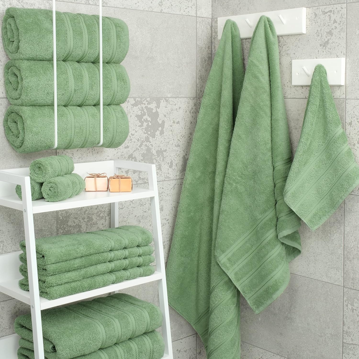 American Soft Linen Luxury 4 Piece Bath Towel Set, 600 GSM 100% Cotton Turkish Bath Towels for Bathroom, 27x54 in Large Bathroom Shower Towels, Sage Green