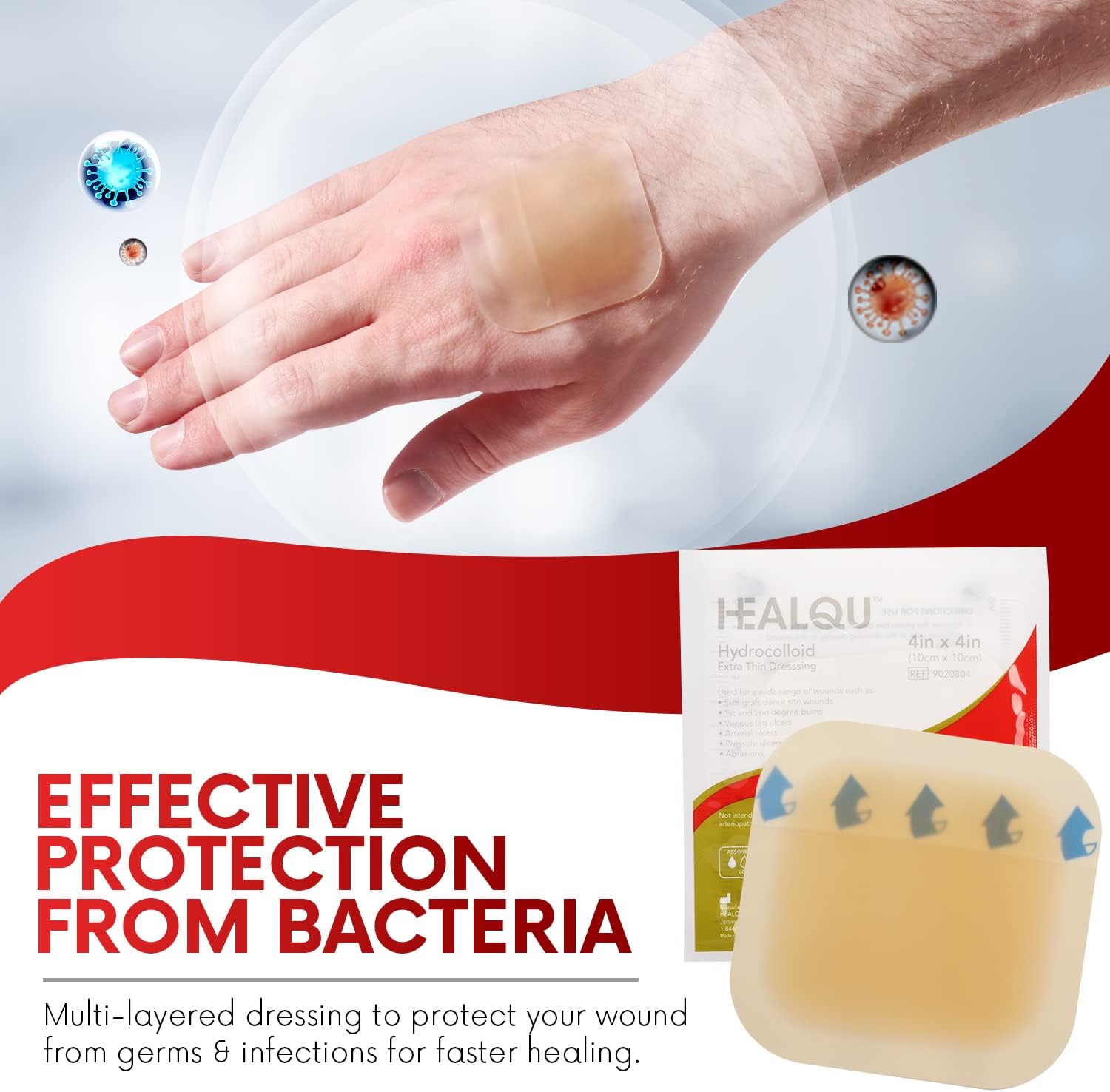- MEDICAL-GRADE WOUND DRESSING - Healqu Hydrocolloid Wound Dressing is generally indicated for superficial wounds with low amounts of drainage. It is specifically designed to aid and protect clean and uninfected wounds β ideal for bed sores, cuts, ulcers, burns, and abrasions