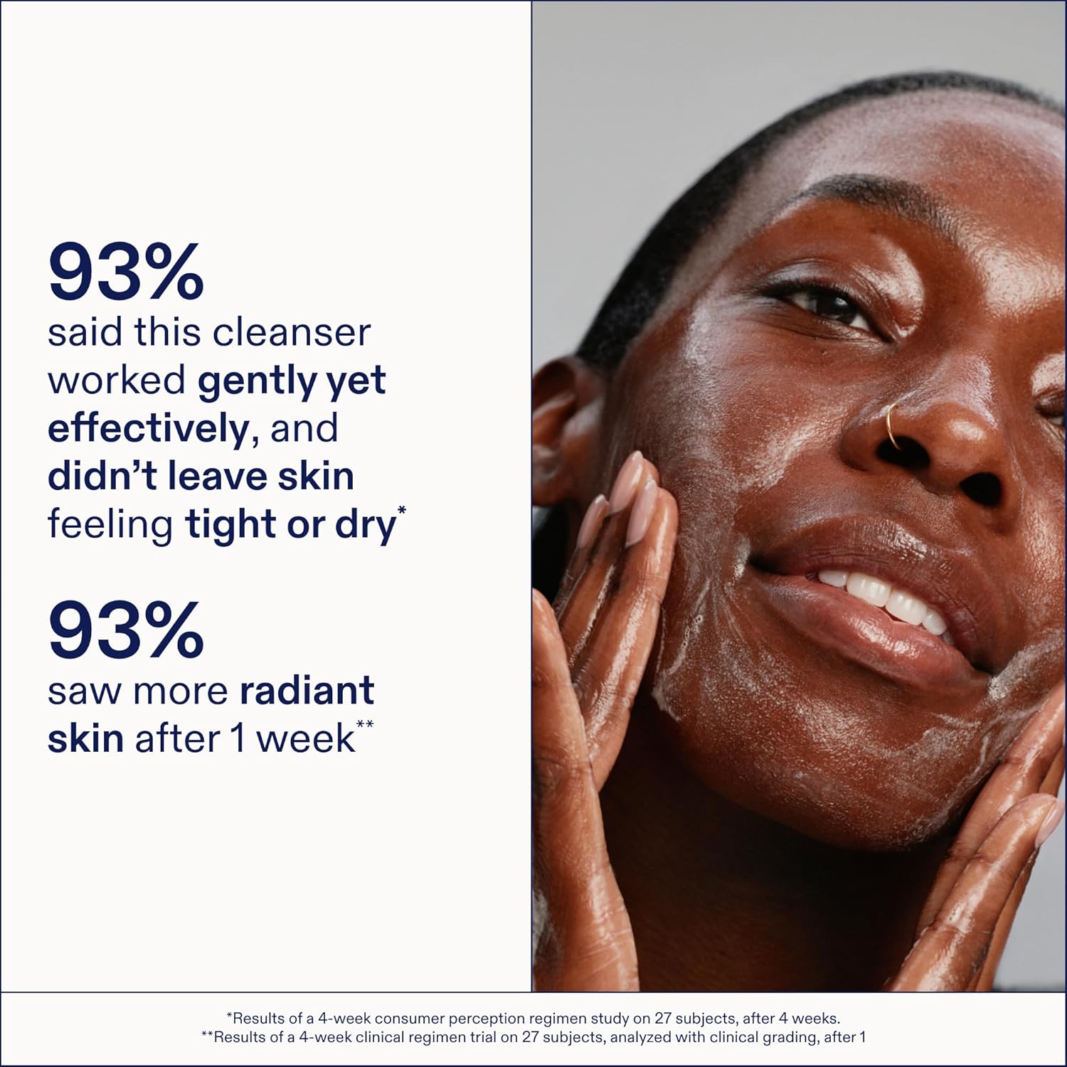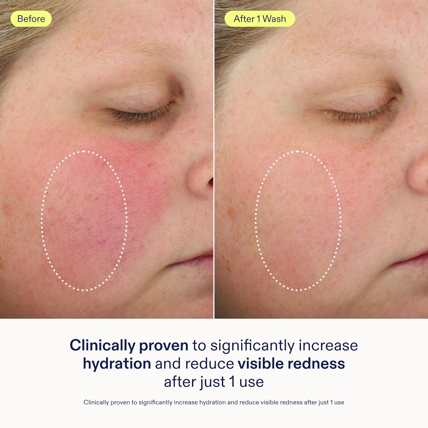 - CLINICAL RESULTS - Clinically proven to increase hydration and reduce visible redness after just 1 use. 100% said skin looks and feels healthier, 96% said this cleanser left skin feeling clean and soft, & 93% saw more radiant skin after 1 week.