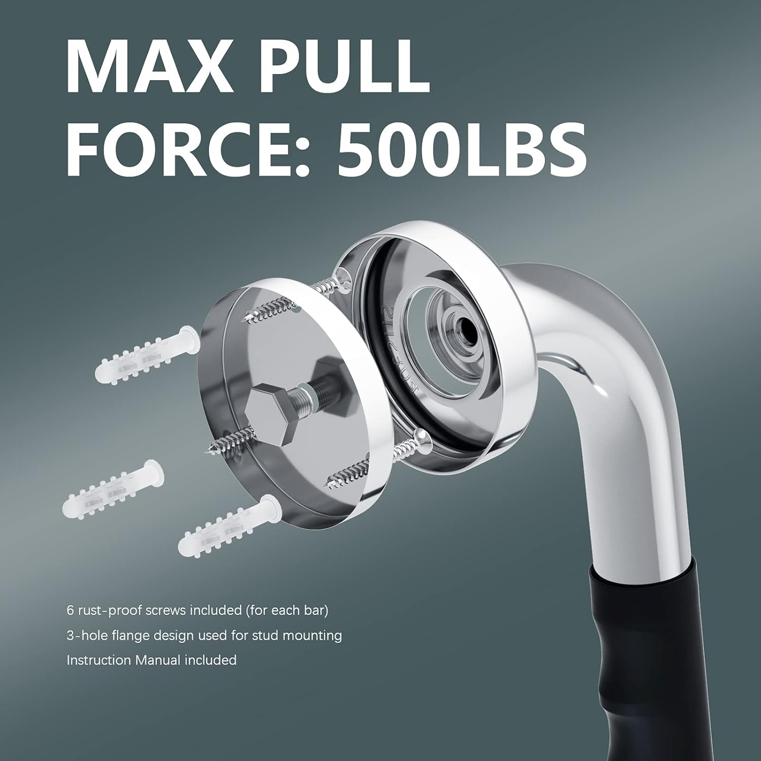 - ZUEXT 2 Pack 12 Inch 1" diameter SUS304 Stainless Steel Chrome Finished Shower Grab Bars with non-slip soft rubber grip; Our anti-slip shower grab handle bar features a convenient design, it come with the mounting screws and anchors for easy installation.