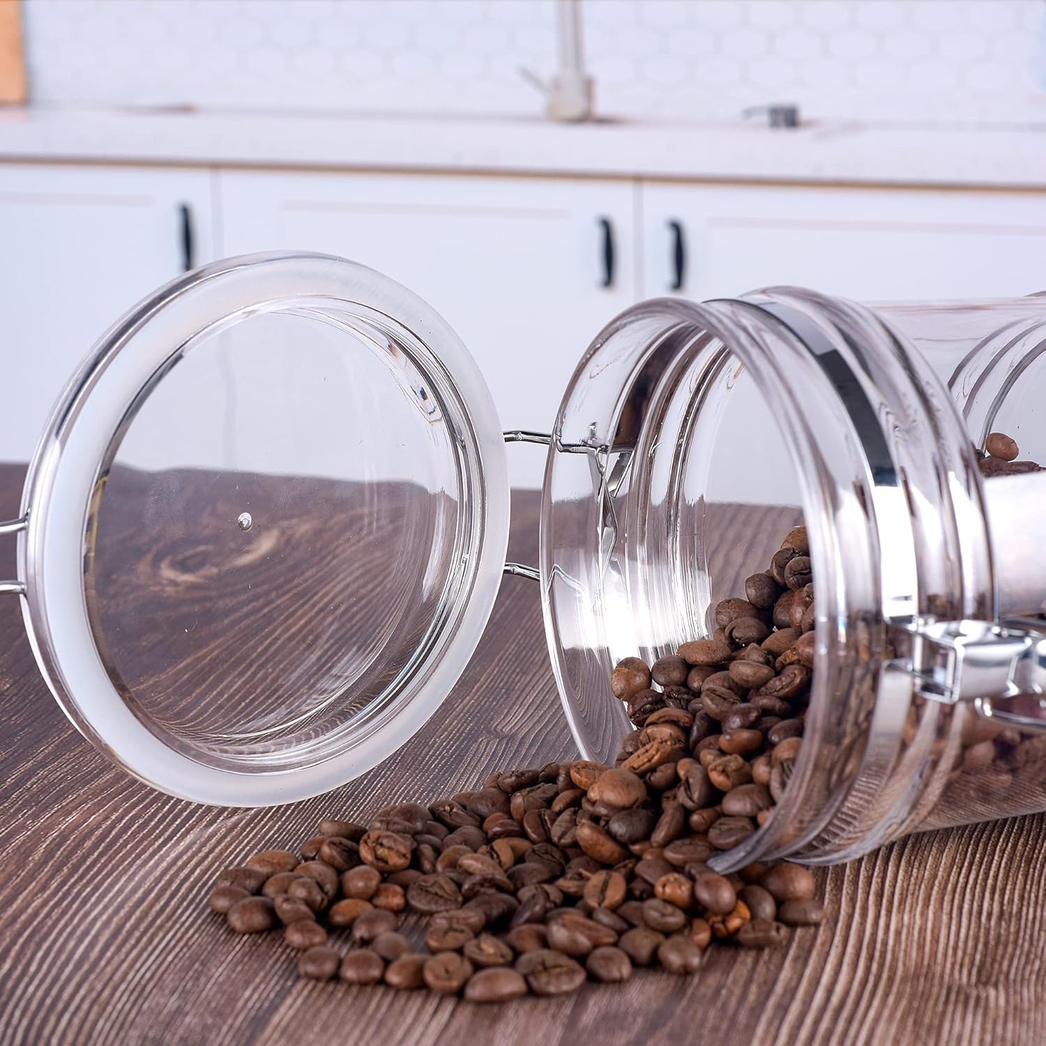 - Air tightness: This canister is a locking clamp lids with silicone seal to keep your food fresh, Suitable for storing pasta, sugar, coffee, candy, cookie etc