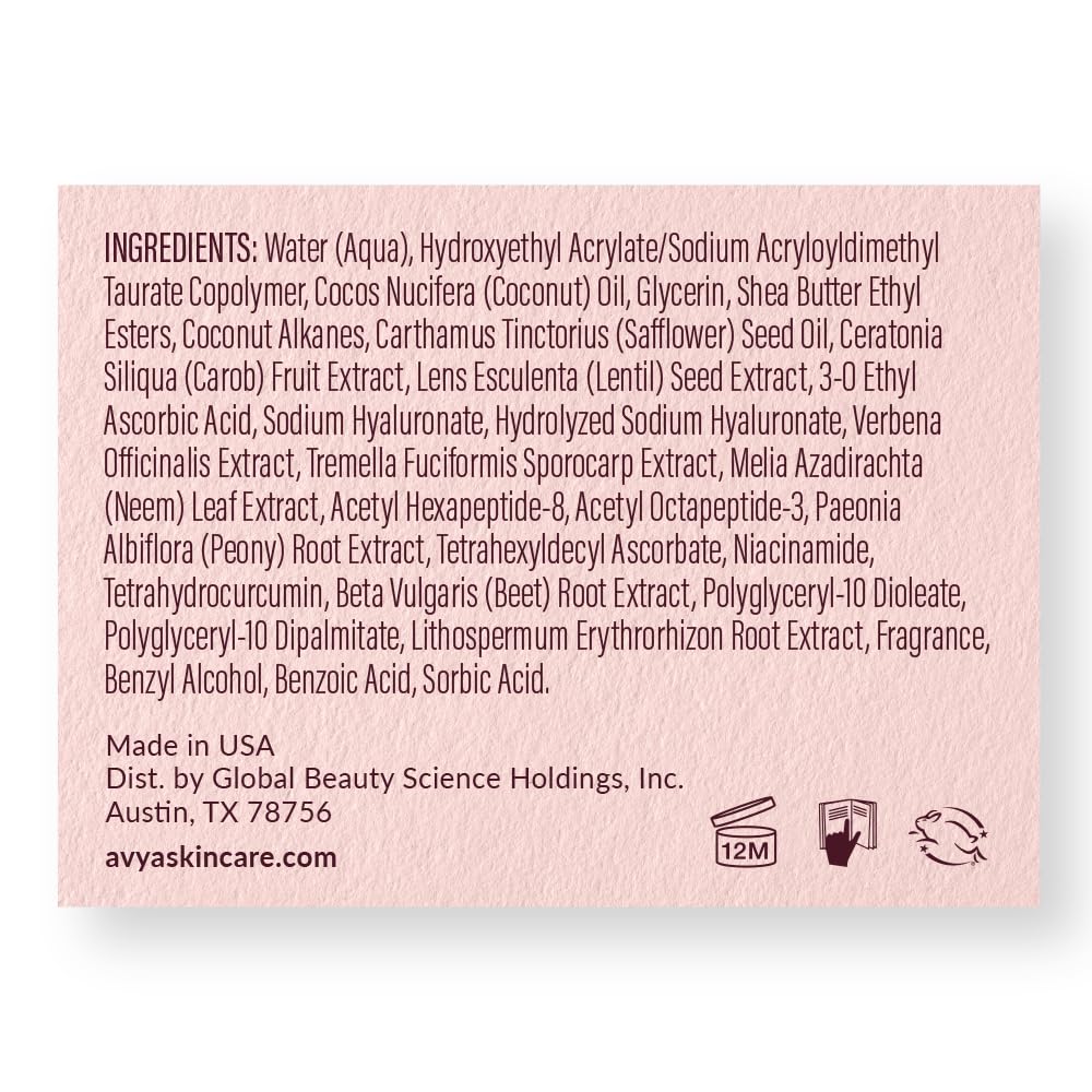 - ADVANCED SCIENCE: Avya naturally boosts radiance and texture with an antioxidant botanicals blend containing Hyaluronic Acid and Snow Mushroom.