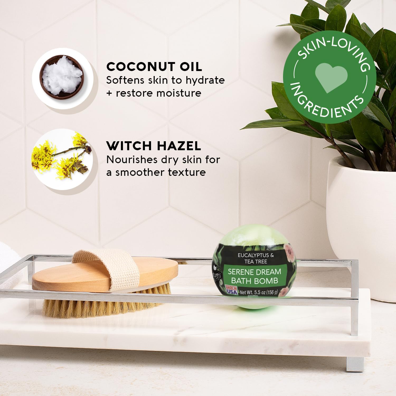 Nature's Beauty Eucalyptus & Tea Tree Bath Bomb Multi-Pack- Natural Hand Crafted, Non-Staining, Luxury Fizzy Spa Bomb, Sooth + Restore Skin, Made w/Coconut Oil & Witch Hazel, 5.5oz (4 Pack)