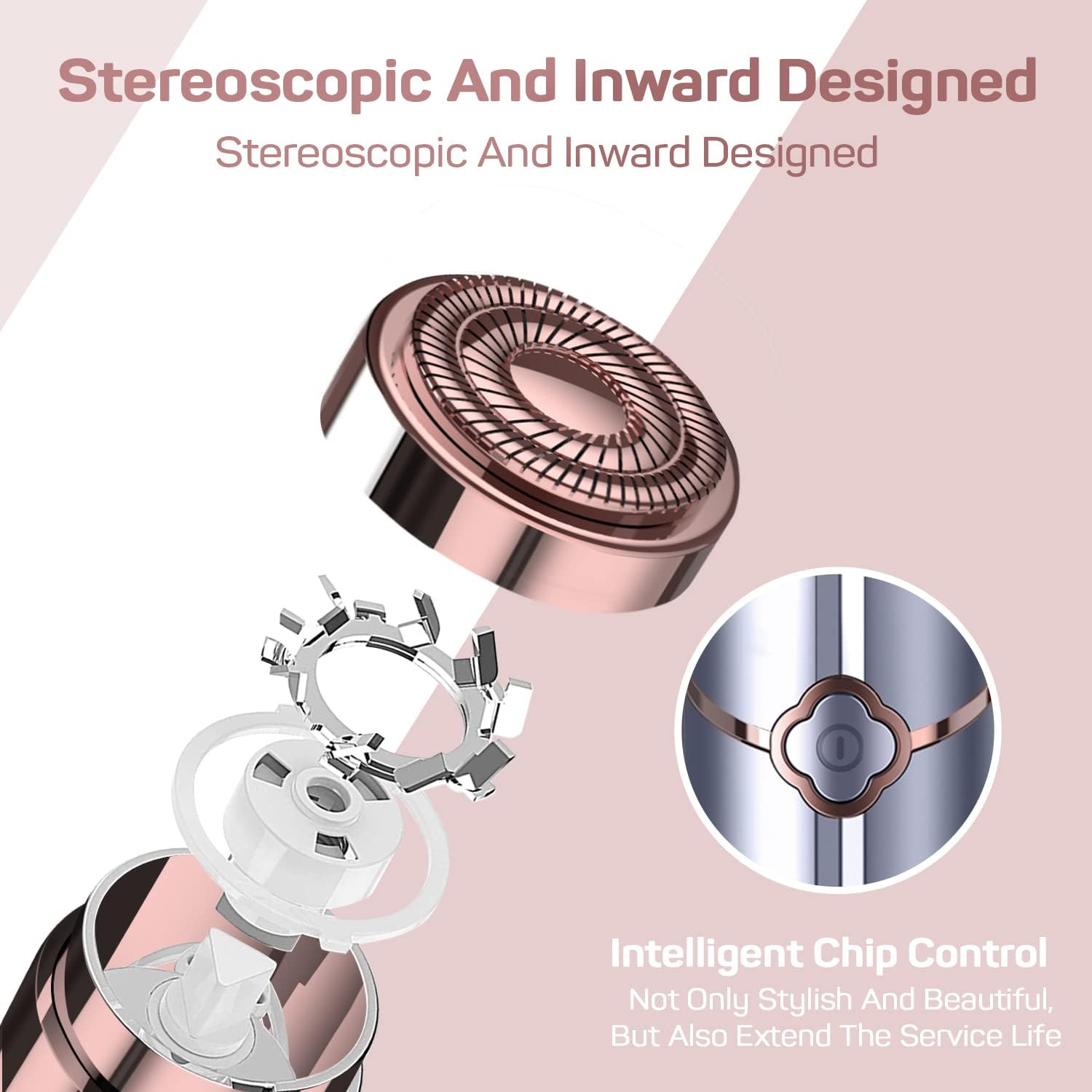 - 【PAINLESS&DERMATOLOGIST RECOMMENDED】The hair removal device fits the contours of your body to gently glide over skin to trim hair without pulling. Facial hair remover features 18k gold plating rounded low-friction protection heads for a smooth complexion without stubble, nicks or redness. The womens face shavers for instant trimming of unwanted hair on cheeks, chin, upper lip and arms.