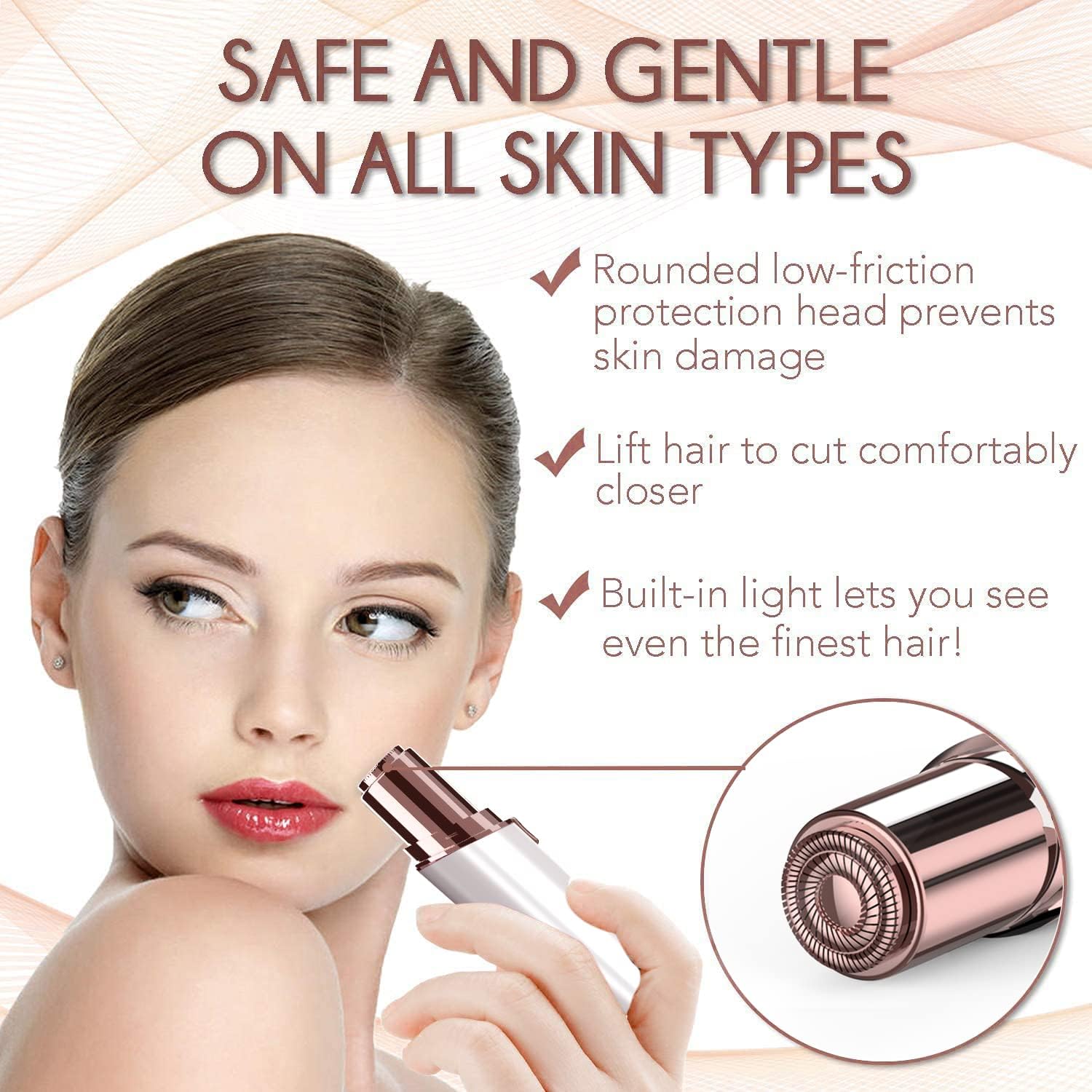 - 【PAINLESS FACIAL HAIR REMOVER】The face shaver for women fits the contours of your body to gently glide over skin to trim hair without pulling for a smooth complexion without stubble, nicks or redness. Facial hair remover’s rounded low-friction protection heads prevents skin damage.