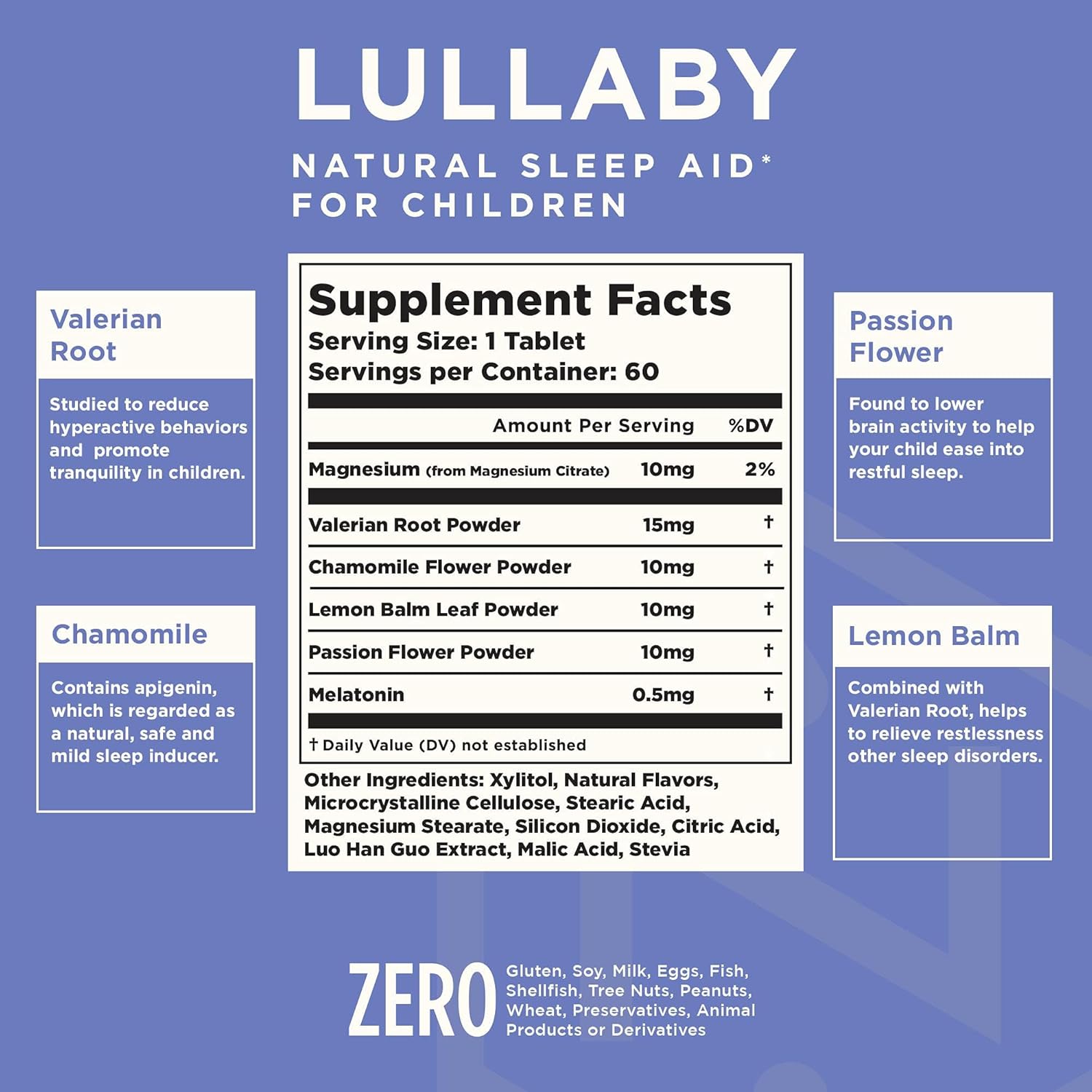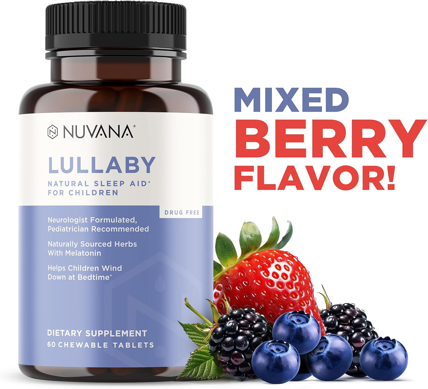- NATURAL NIGHT'S REST: Trust in the quality of Nuvana Lullaby's all-natural ingredients. Our chewable tablets are vegan, gluten-free, and preservative-free, ensuring that you can give your child a safe and healthy sleep aid with confidence.