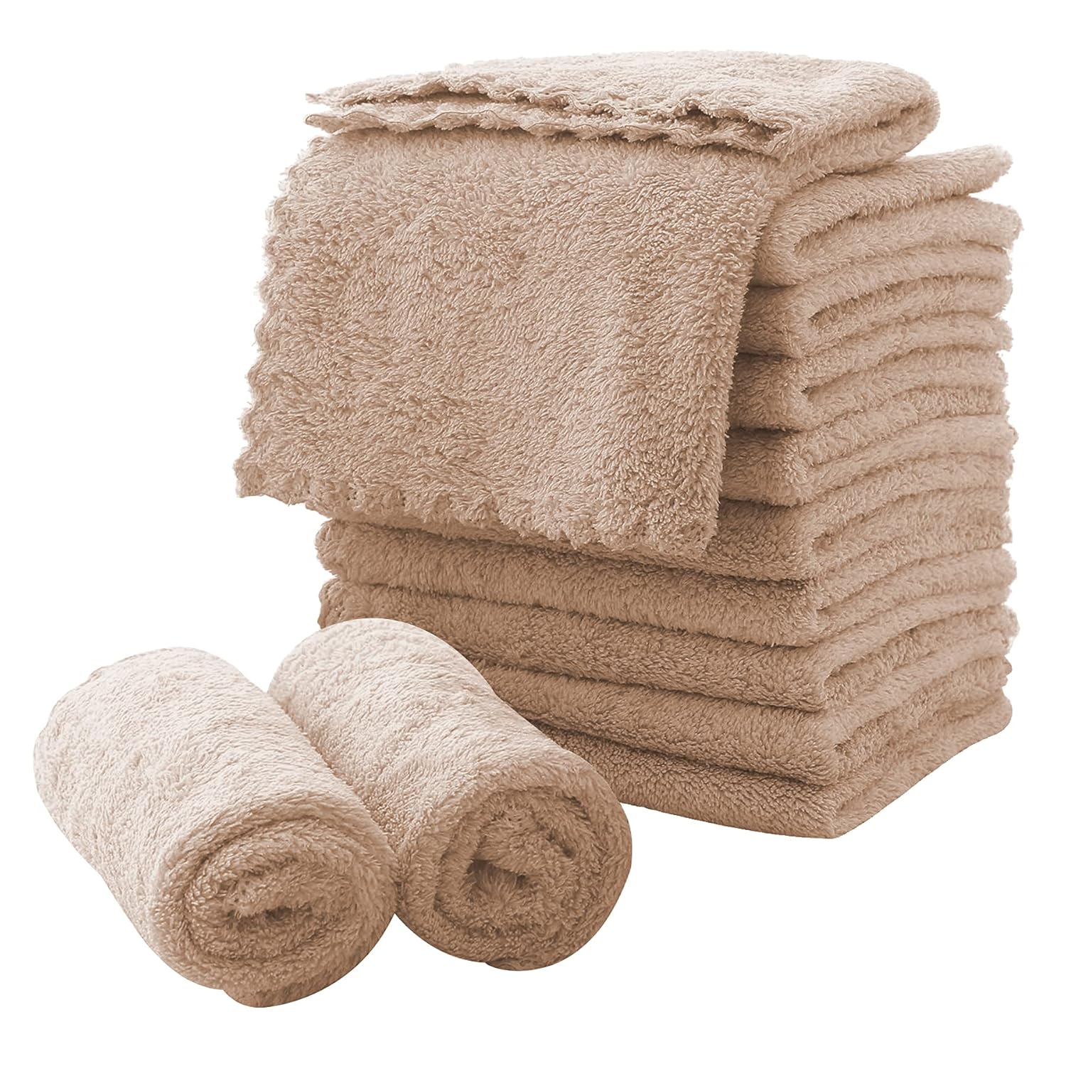 MOONQUEEN Microfiber Facial Cloths Fast Drying Washcloth 12 Pack - Premium Soft Makeup Remover Cloths - Brown
