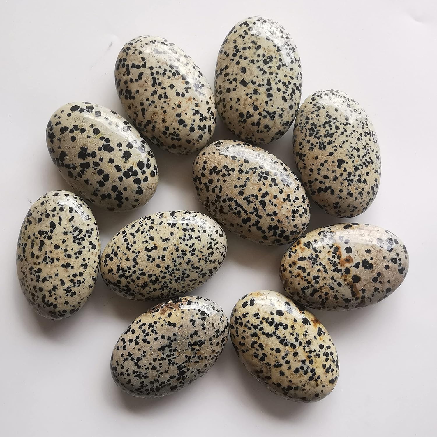 Natural Dalmation Jasper Oval Polished Worry Stones, Healing Crystal Indoor Fountain Stones Massage Energy Anxiety Relief Items