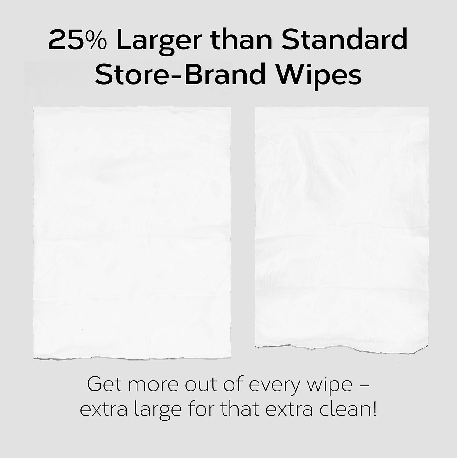 - Extra Large for that Extra Clean: These butt wipes are up to 25% larger than the standard size wipes from the store, making them perfect for adults, kids, babies and all sizes of butts in between. Fold them for multiple wipes, and get extra clean without using a pile of wet wipes or wads of toilet tissue.