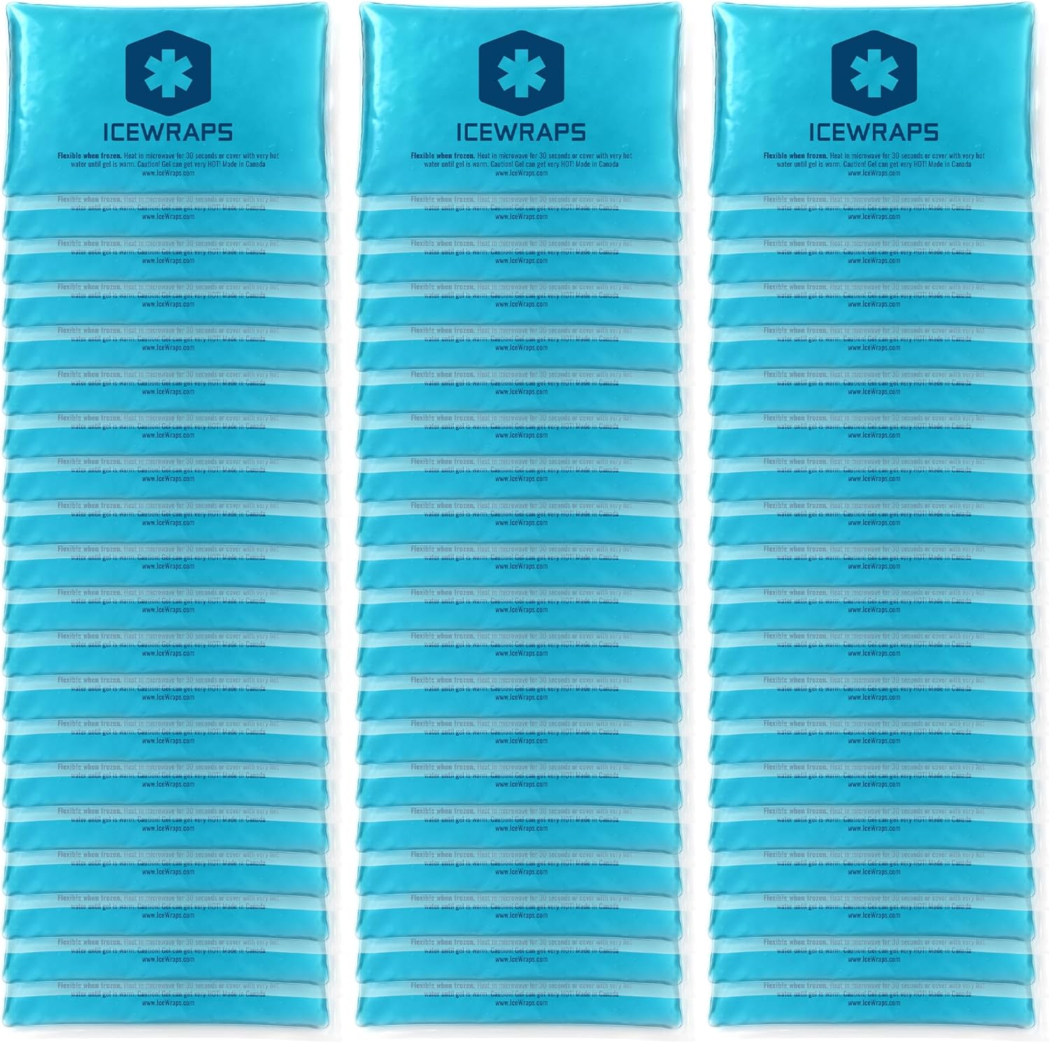 ICEWRAPS Hot & Cold Ice Packs - 3 x 5 in. Soft Gel Ice Packs – Reusable for Injuries Headaches, Joints, Fevers, & More – Made of Pro-Grade, Puncture-Proof Material (60 Packs)
