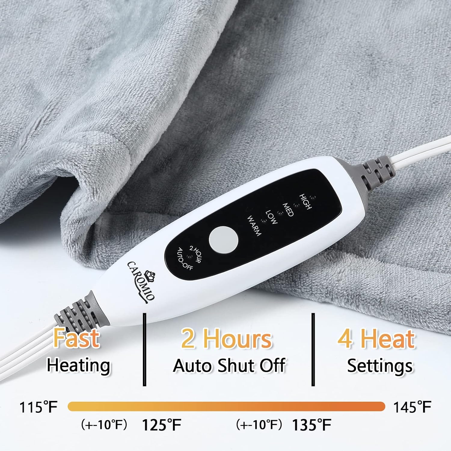 CAROMIO Heating Pad for Neck and Shoulders Back Pain Relief, Weighted Electric Heating Pads with Auto Shut Off, Full Body Large Back Heat Pad, Fast Heating and 4 Heat Settings (Grey, 33"x22")
