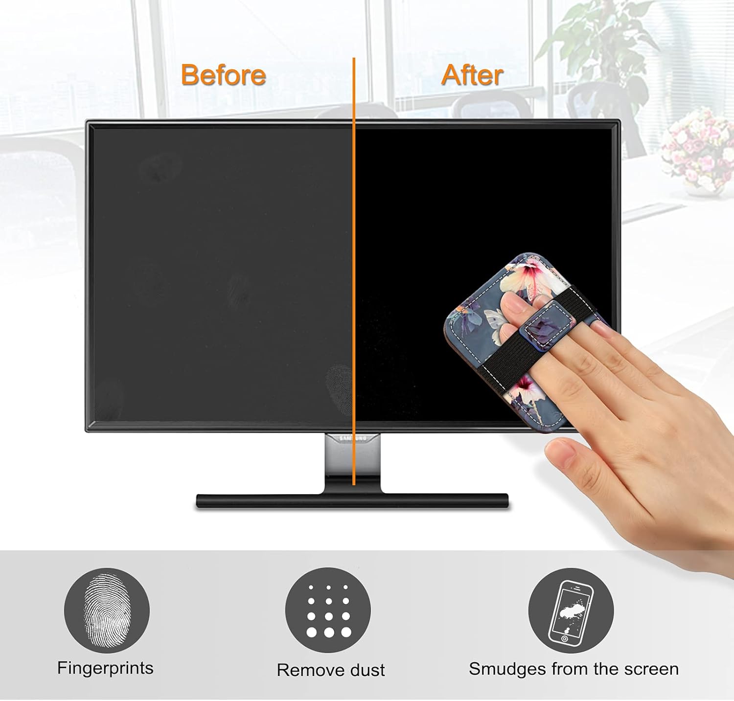 - Features elastic handle strap for any hand size, easy to keep hold of the clean pad while wiping across the screen.