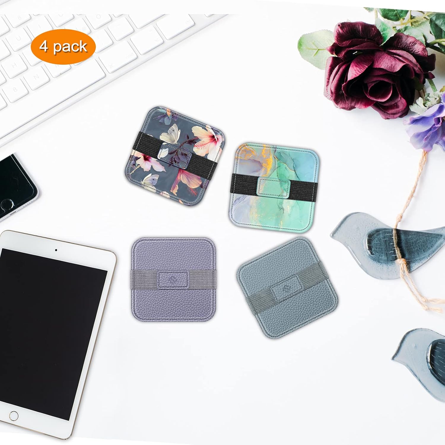 Fintie Screen Cleaning Pad, [4 Pack] Soft Cloth Wipes Screen Cleaner with Elastic Strap for iPad, iPhone, MacBook, Tablets, Laptop (blooming hibiscus)