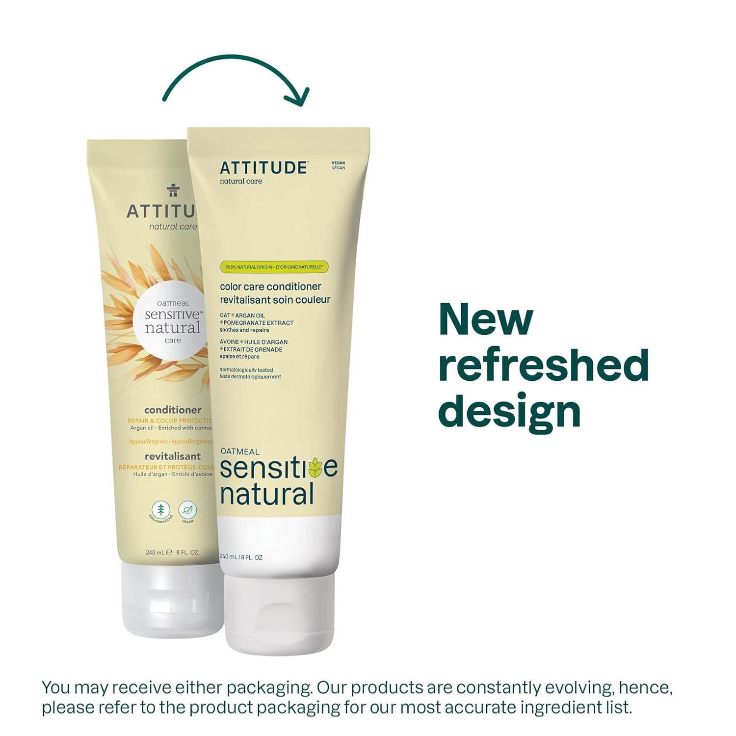 ATTITUDE Hair Conditioner for Sensitive Dry Scalp, Soothing Oat, Protects Color, Naturally Derived Ingredients, Dermatologically Tested, Vegan Detangler, Color Care, 8 Fl Oz (Pack of 6)