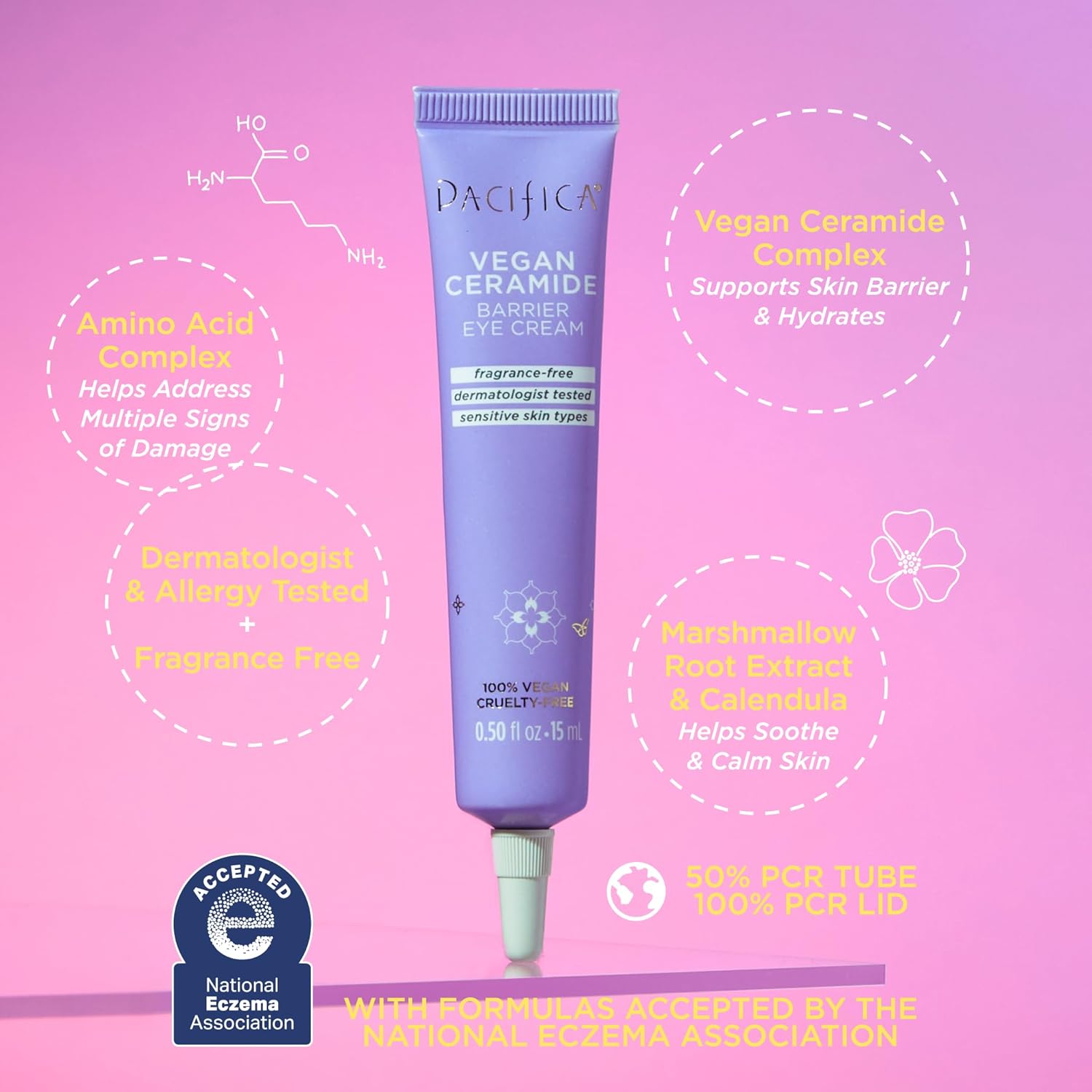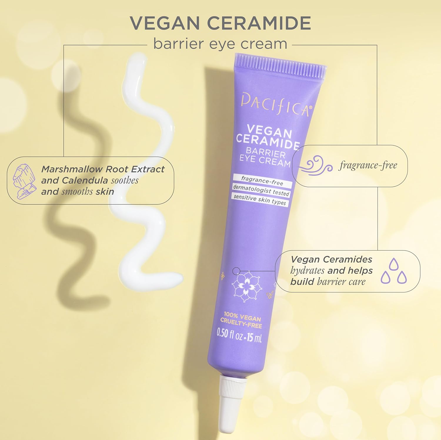 Pacifica Vegan Ceramide Barrier Eye Cream – Hydrating Under Eye Moisturizer for Dry, Sensitive Skin, Fragrance-Free Treatment for Dark Circles, Puffiness & Fine Lines Dermatologist Tested Clean Beauty