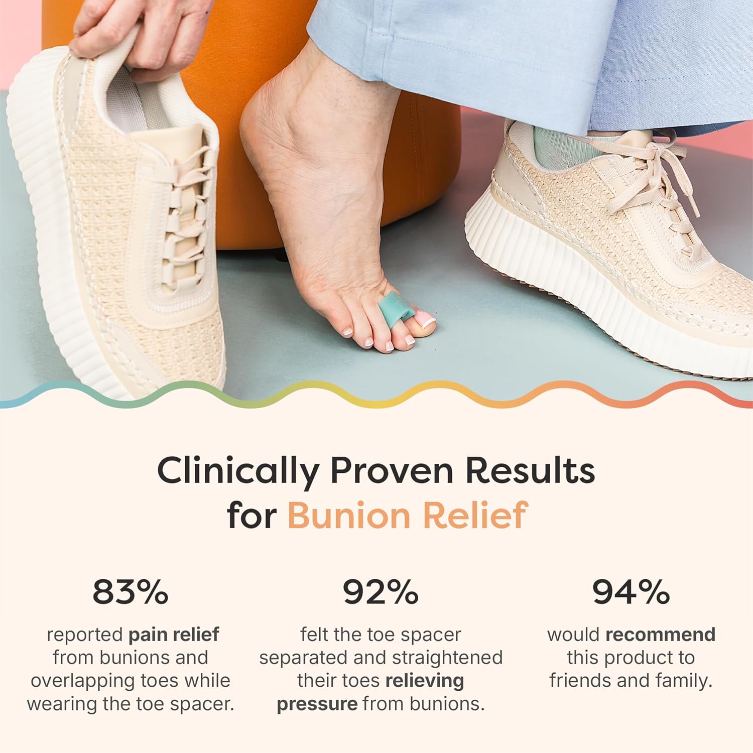 - Relieve Bunion Pain - ZenToes single loop silicone toe separator is designed to provide noninvasive pain relief from bunions, or hallux valgus, and overlapping toes by gently realigning and straightening your big toe. Our single loop toe spacers separate the toes, straightening the big toe to relieve pressure from the bunion. Can also be used as toe stretchers to help strengthen the big toe, which improves balance and stability to your feet.