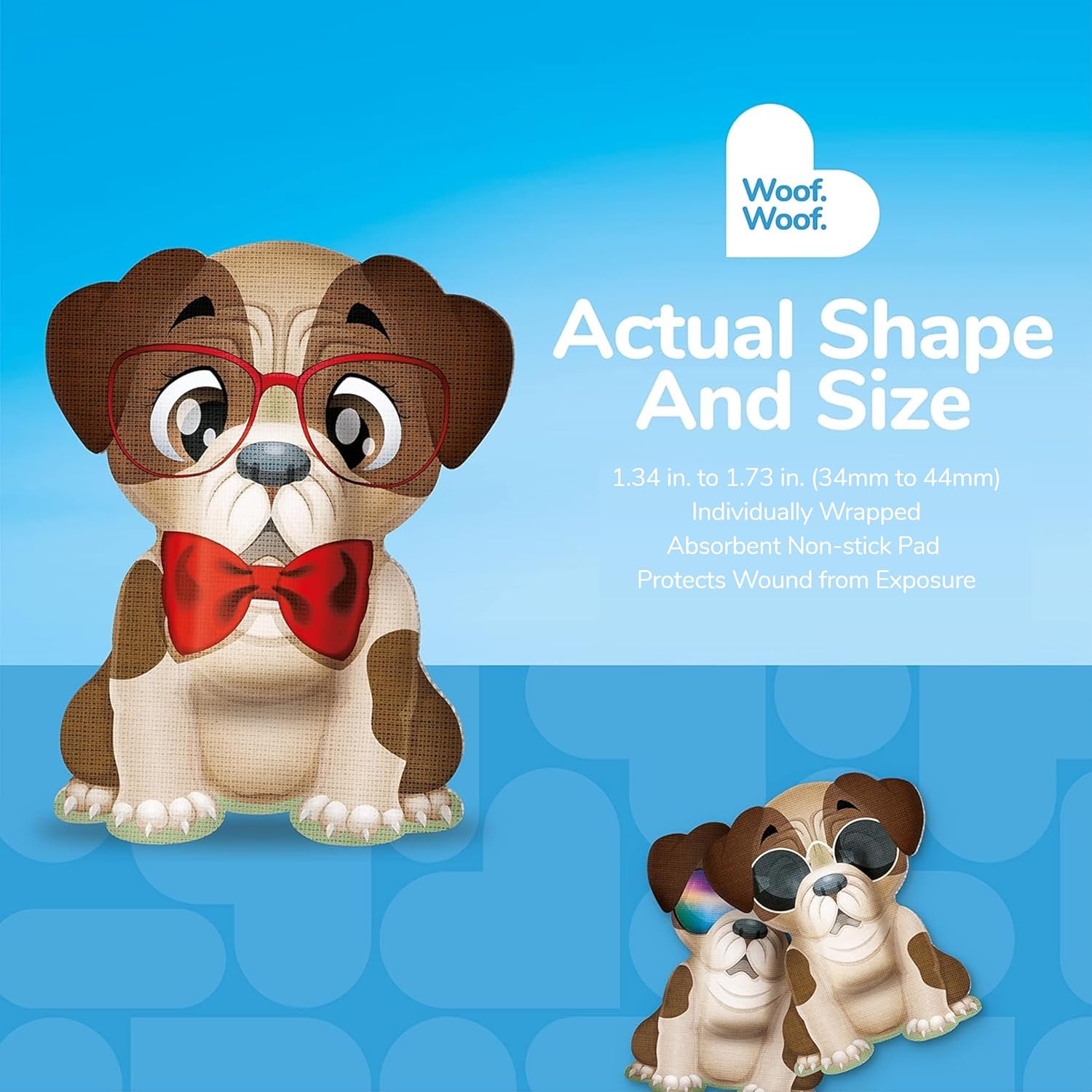 - 24 BULLDOG KIDS BANDAGES: Fun dog-shaped adhesive bandages pack helps protect cuts, scrapes, and minor wounds while making healing less stressful for children; bandages come in 3 assorted styles