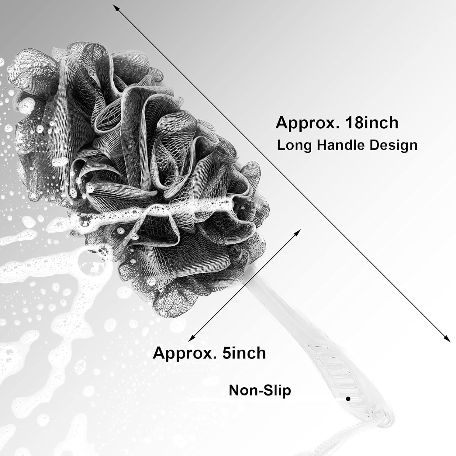 - (18 INCH LONG):Our superior black loofah brush back scrubber is long enough for you to clean your entire back .