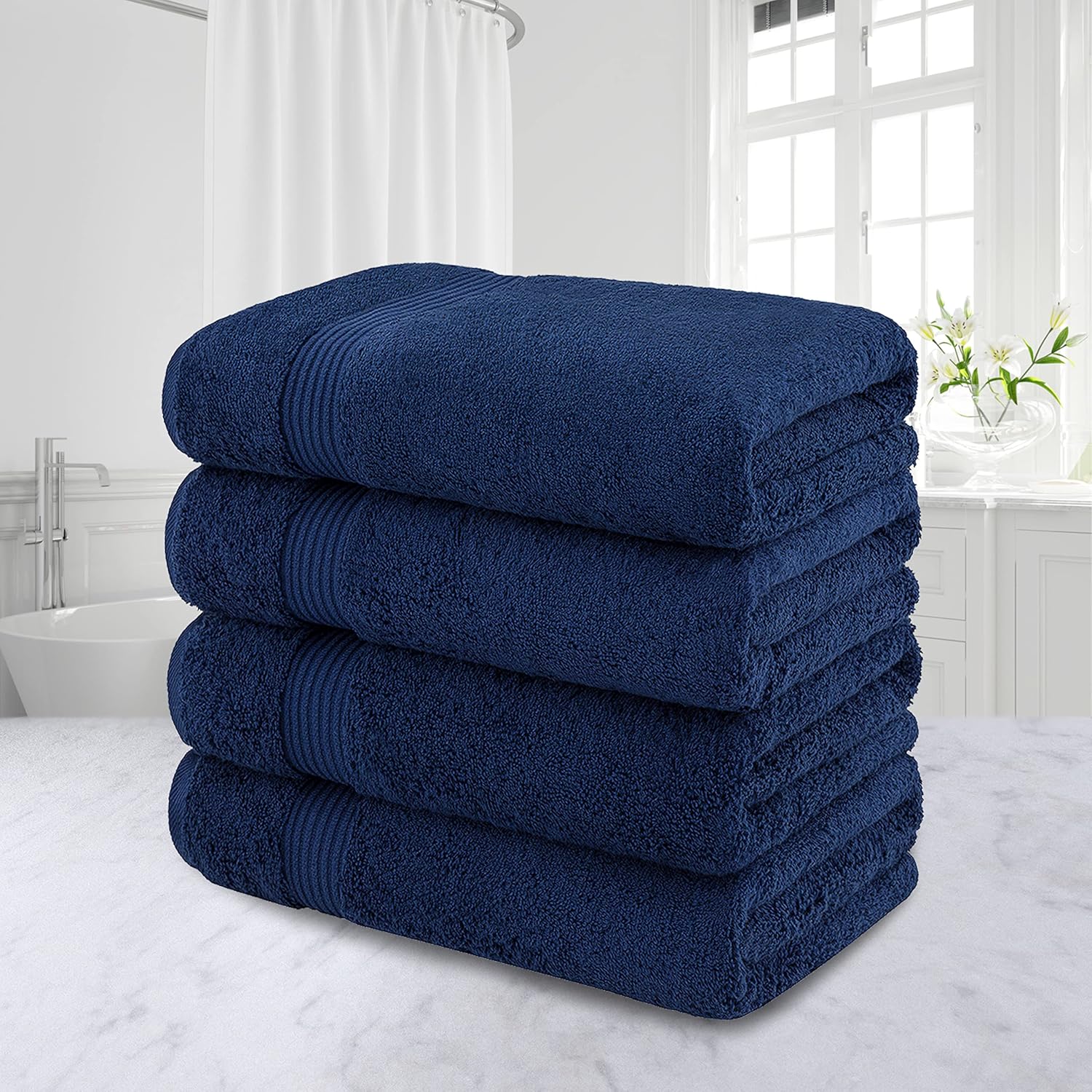 American Veteran Towel, 100% Cotton Turkish Bath Towels for Bathroom 4 Pack, 27x54 Extra Large Premium Soft Drying Bathroom Towels, Navy Blue