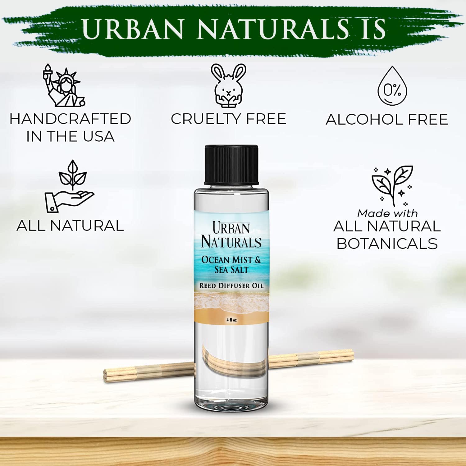 Urban Naturals Ocean Mist & Sea Salt Scented Oil Reed Diffuser Refill, 4 oz (2 Pack)