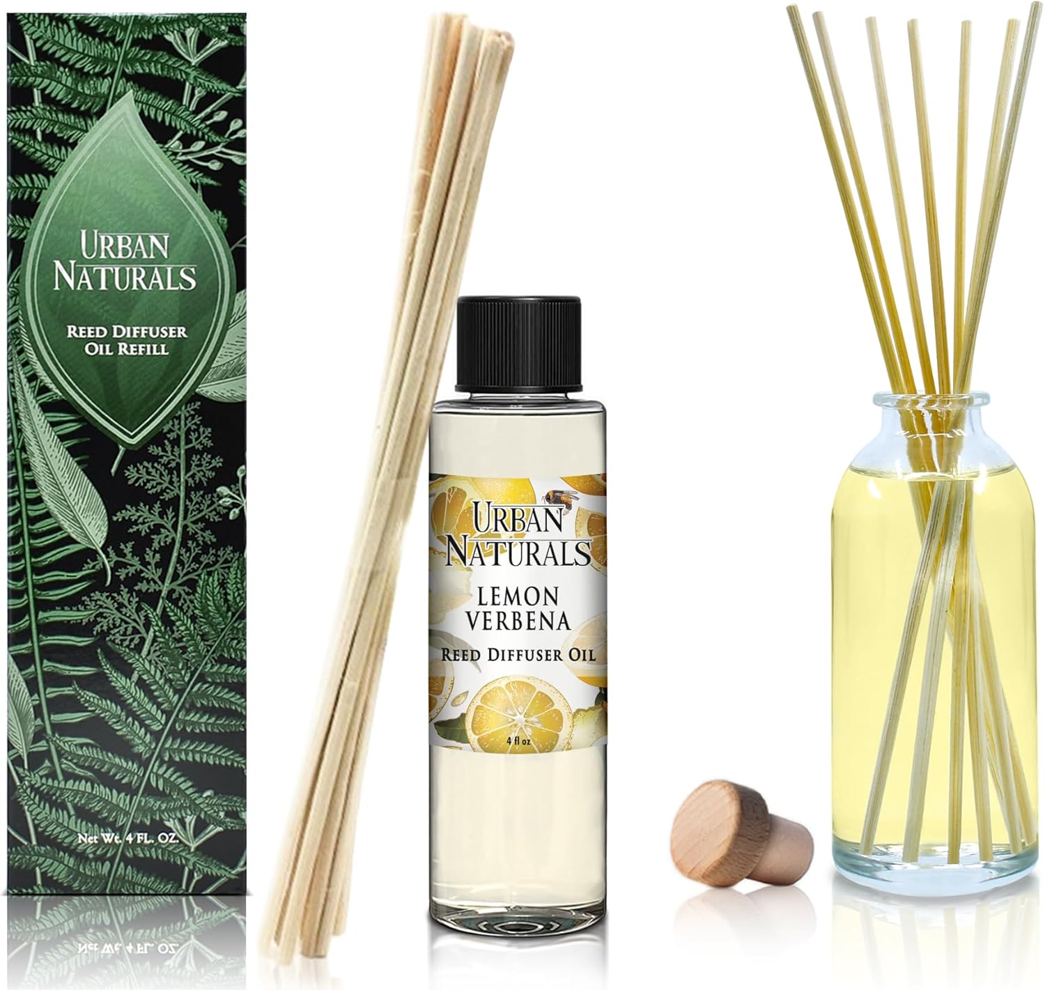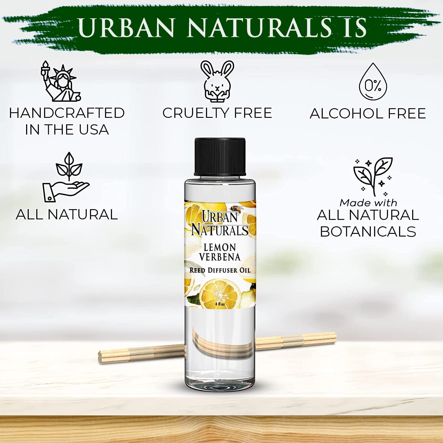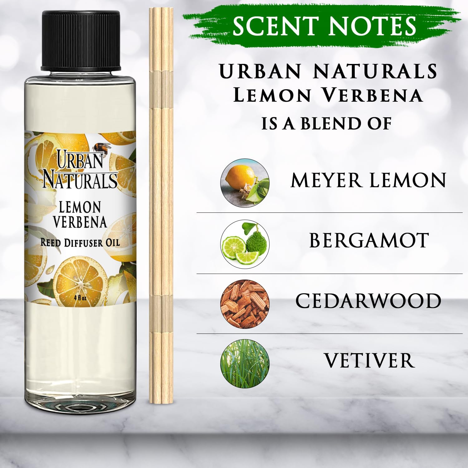 Urban Naturals Lemon Verbena Scented Oil Reed Diffuser Refill | Includes a Free Set of Reed Sticks, 4 oz (2 Pack)