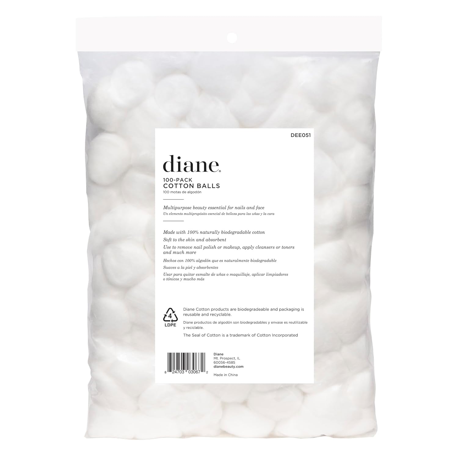 Diane 100% Pure Cotton Balls for Face, Makeup Removal, Nail Polish, Applying Lotion or Powder, First-Aid for Everyday Household Use, 100 Count
