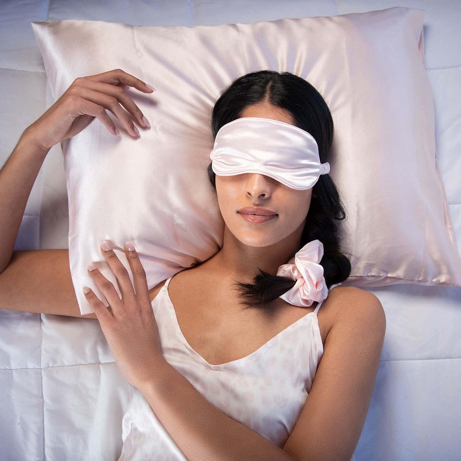 - COMPLETE BEAUTY SLEEP SET: Elevate your nightly routine with our vegan silk pillowcase set. This luxurious 3-item ensemble includes a standard size satin pillowcase (26inchX20inch), a satin eye mask, and a matching scrunchie. Whether at home or on the go, this set provides everything you need for a restful sleep.