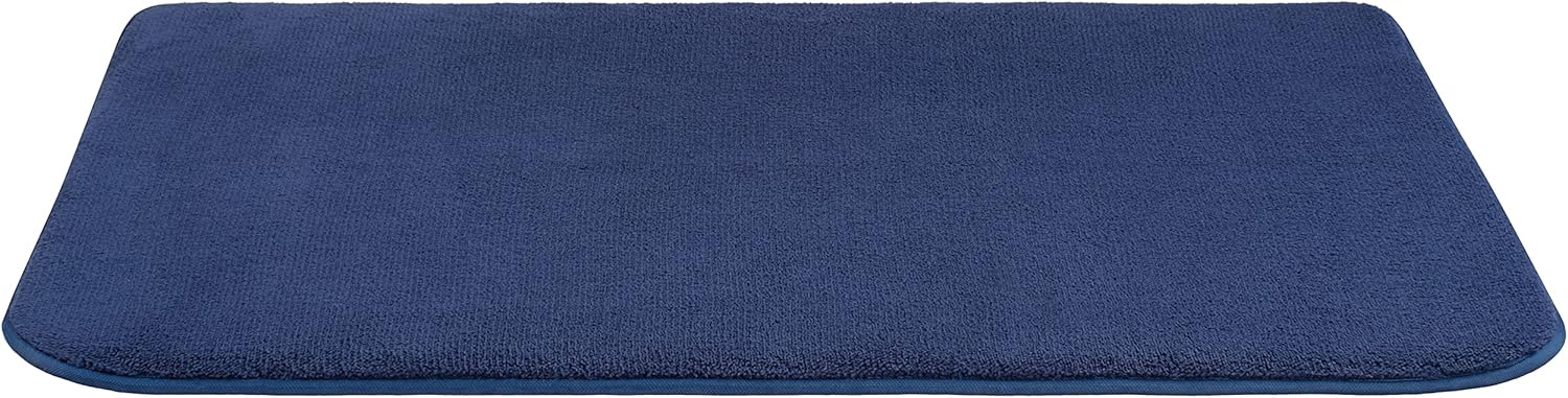 American Soft Linen 21x32 Fluffy Foamed Slip Reducer Bath Rug, Machine Washable Area Bath Mat Rugs for Bathroom, Navy Blue