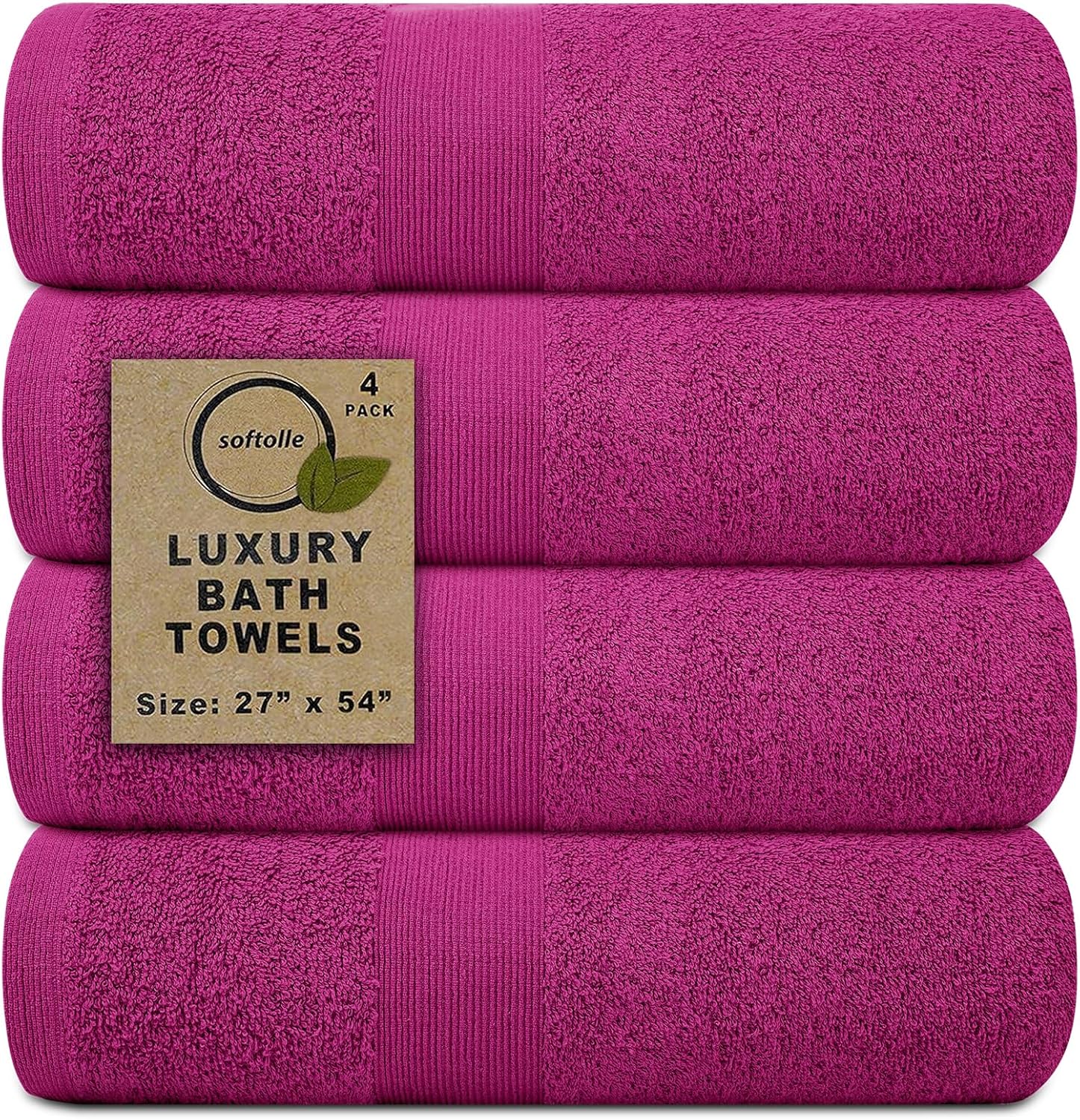 Softolle Luxury Bath Towels Set of 4 (27” x 54”) | Towels for Bathroom | Super Soft | Highly Absorbent Towels for Home, Spa, Gym (Dark Pink)