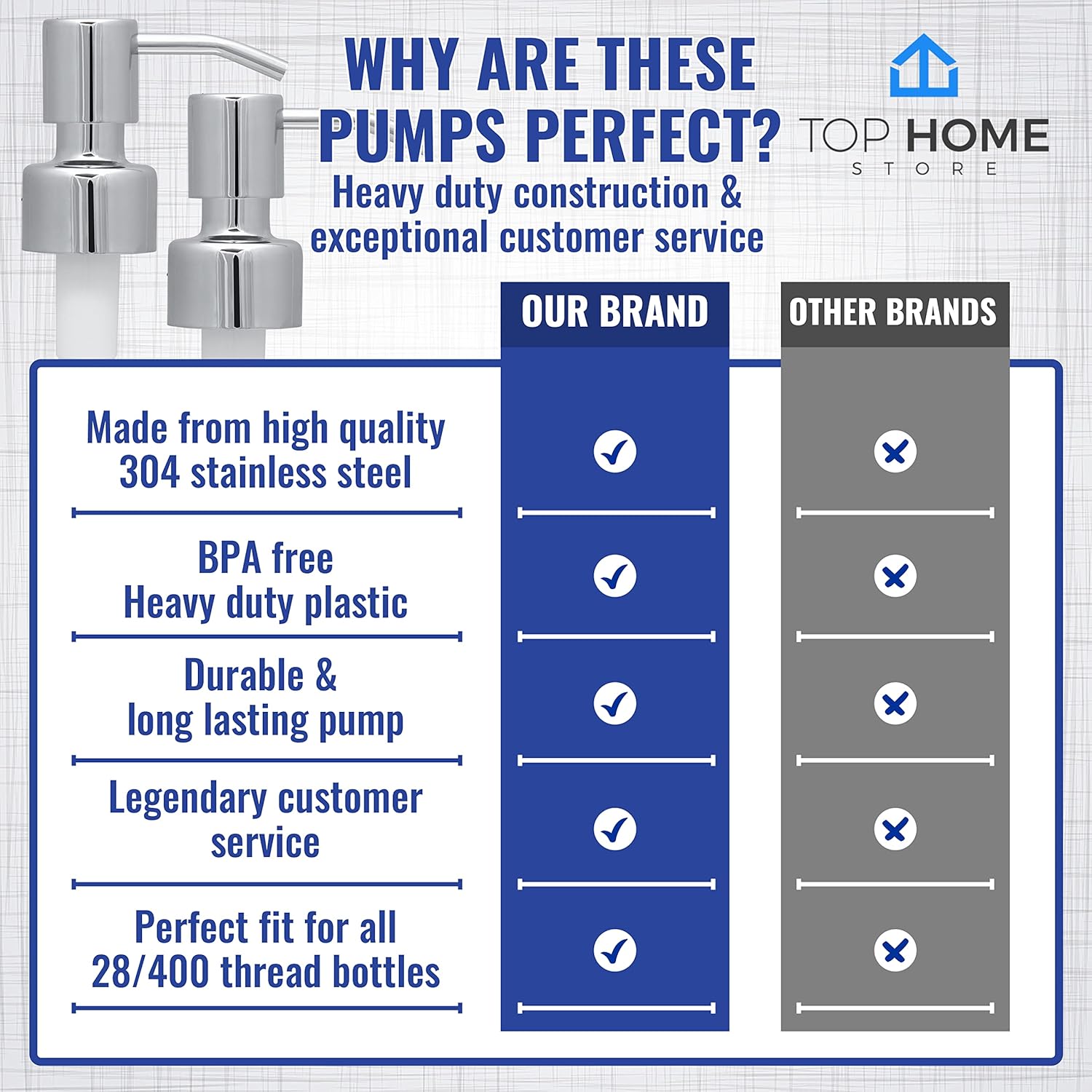 Stainless Steel Soap and Lotion Dispenser Pumps, Replacement for Your Bottles (Chrome, 2 Pack)